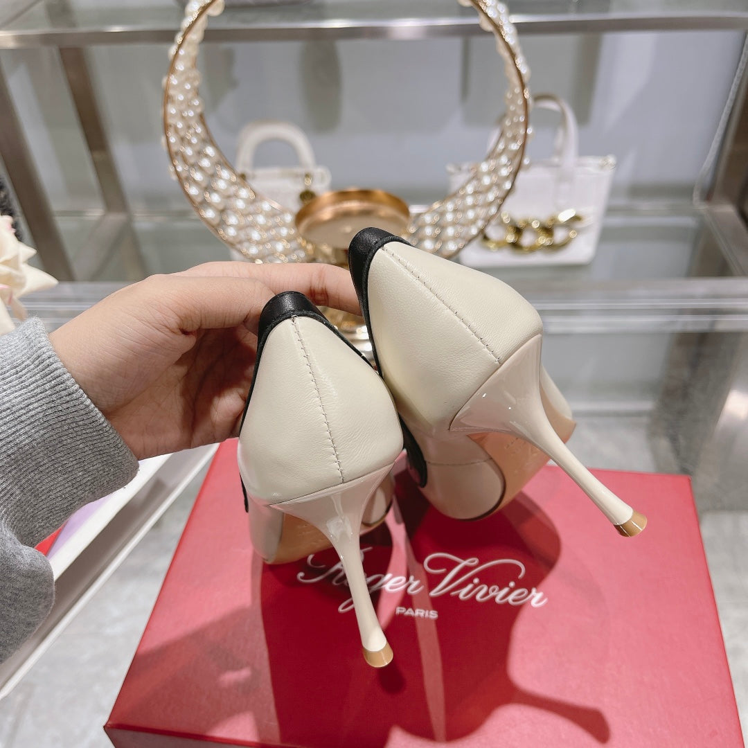 Belle Viv Metal Buckle Pumps 85 White Black Patent Leather