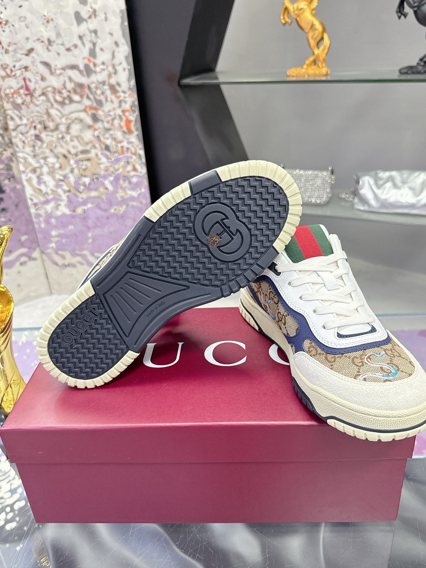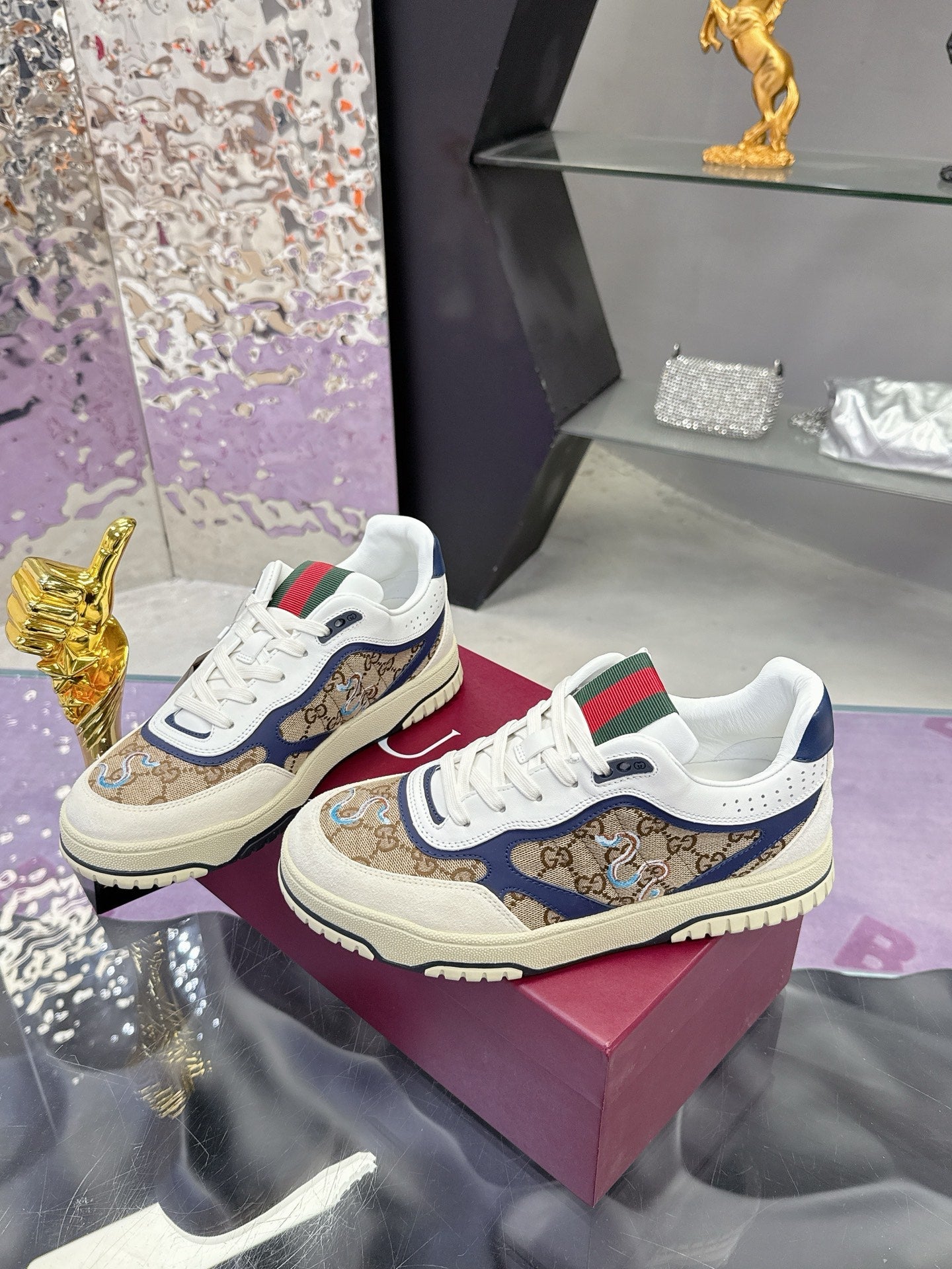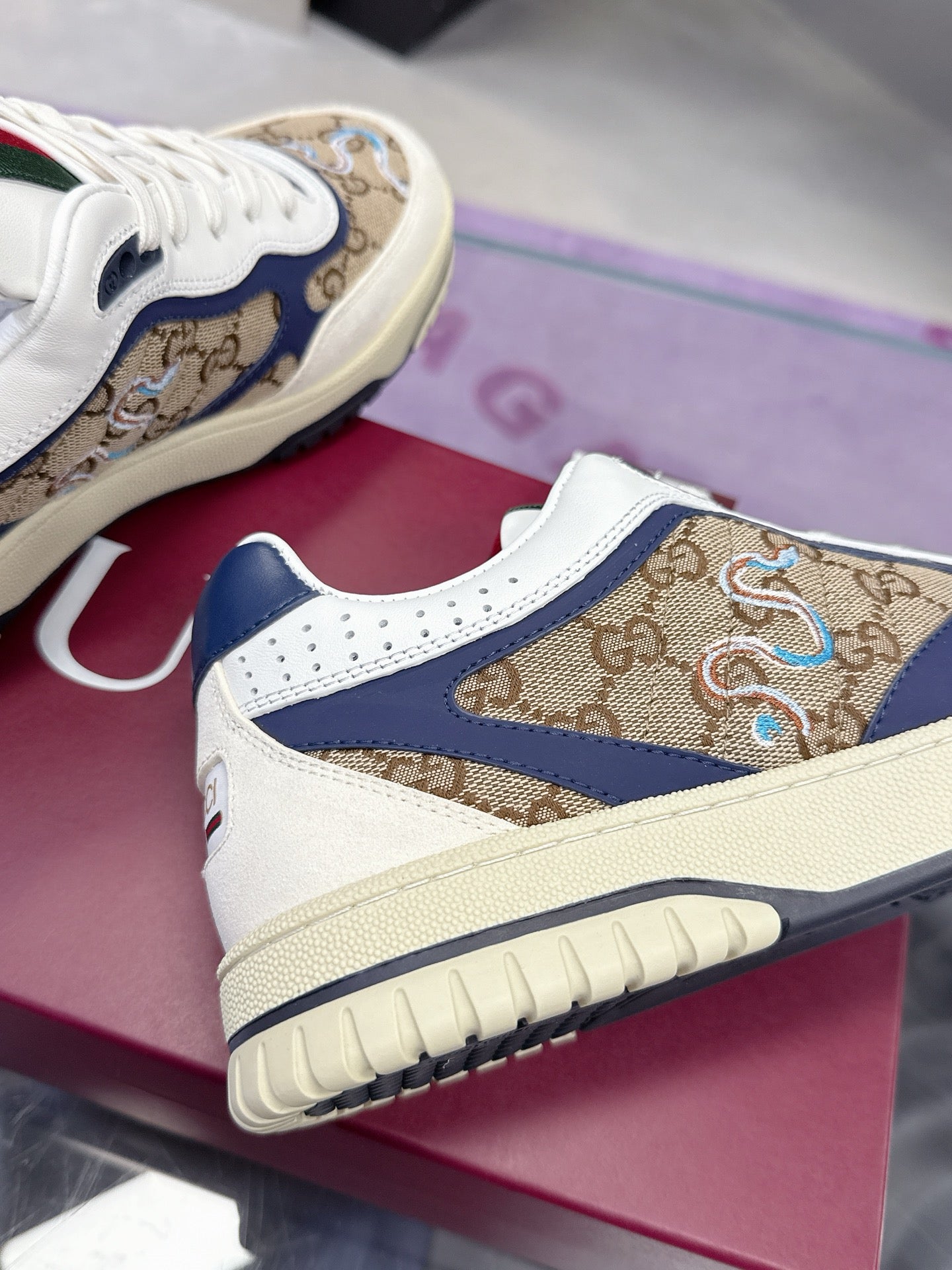 GG Men's 25 Snake Sneaker Brown Blue Cowhide 574715