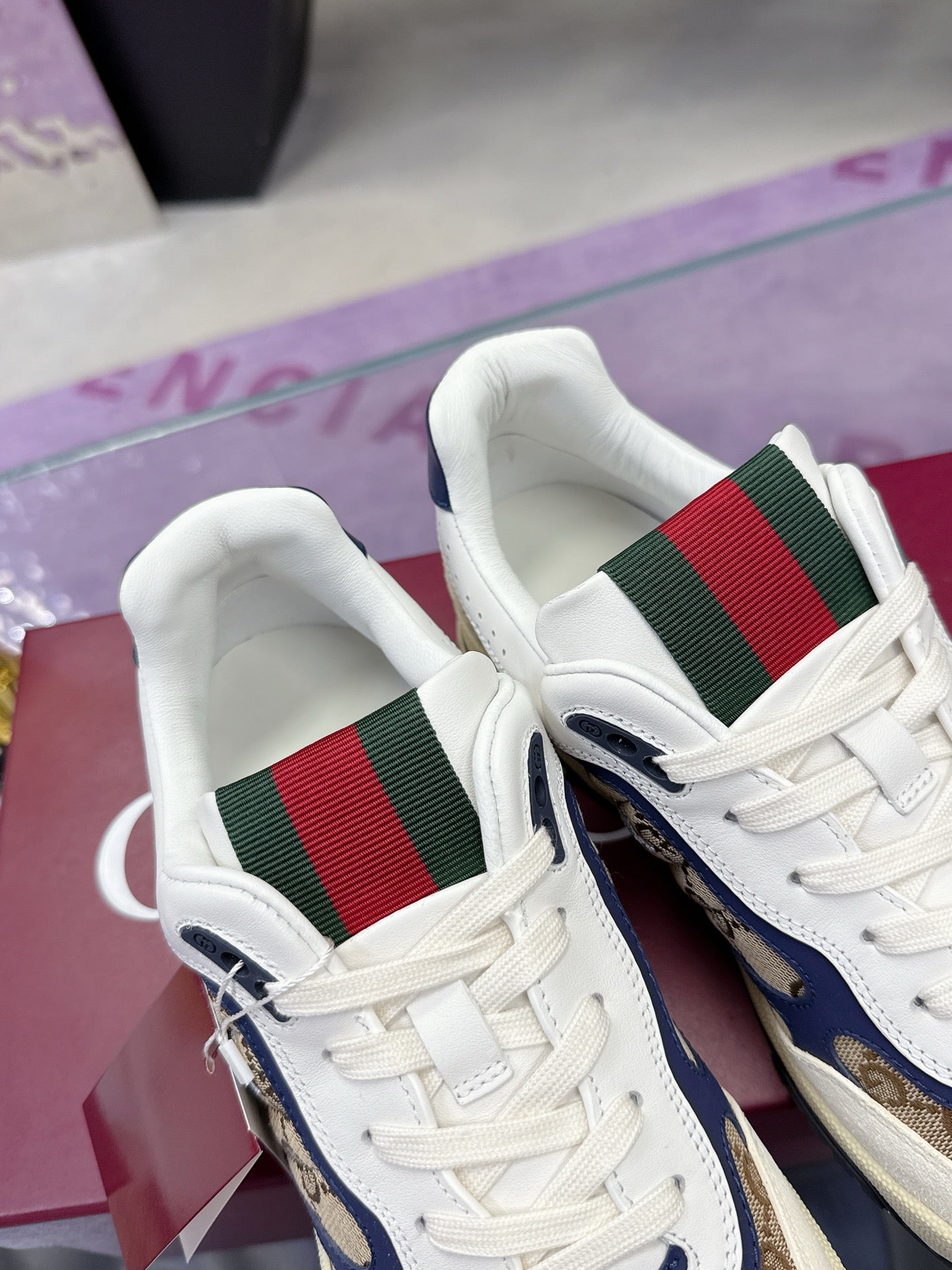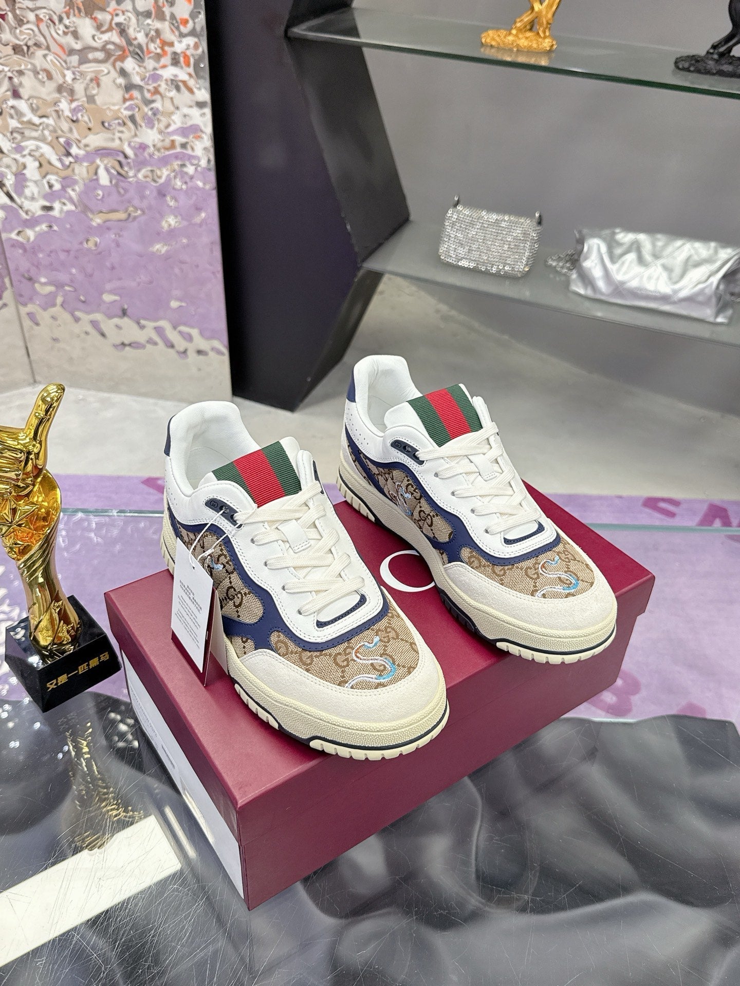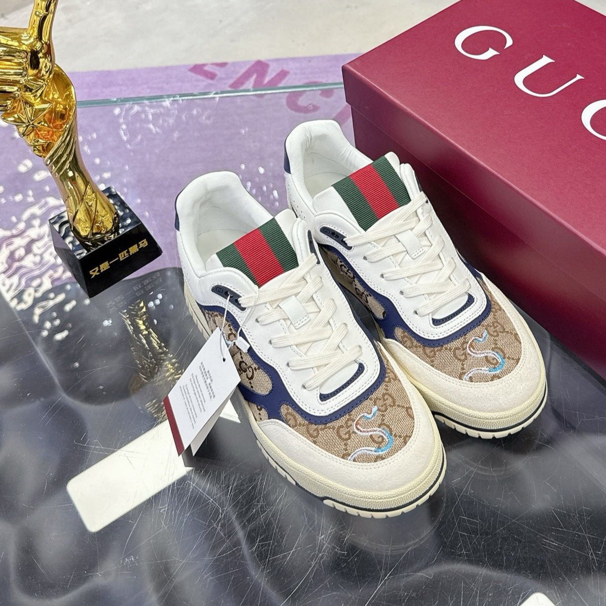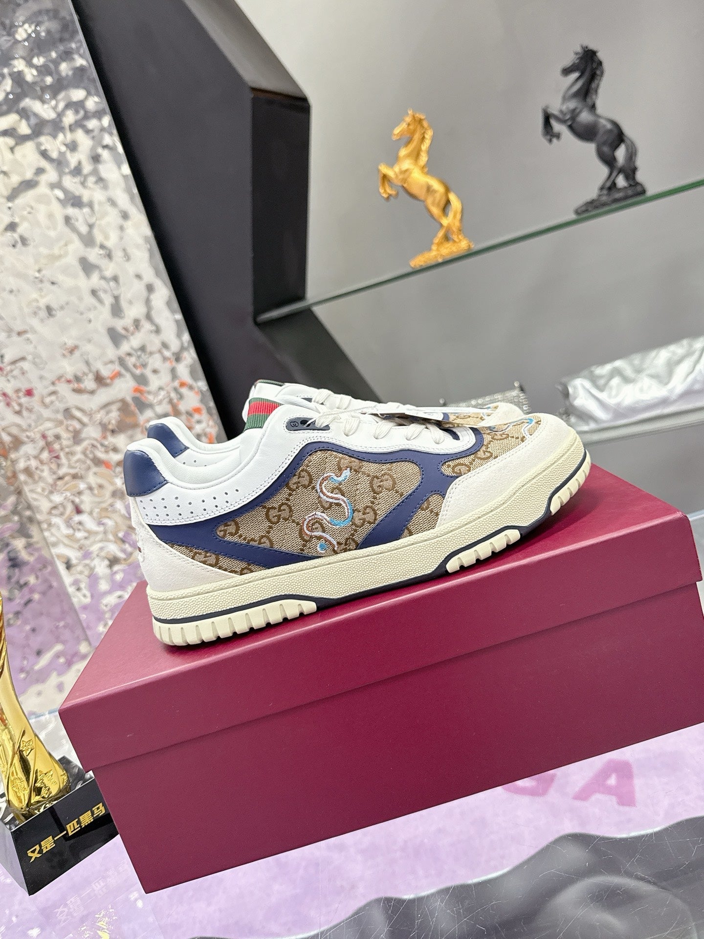 GG Men's 25 Snake Sneaker Brown Blue Cowhide 574715