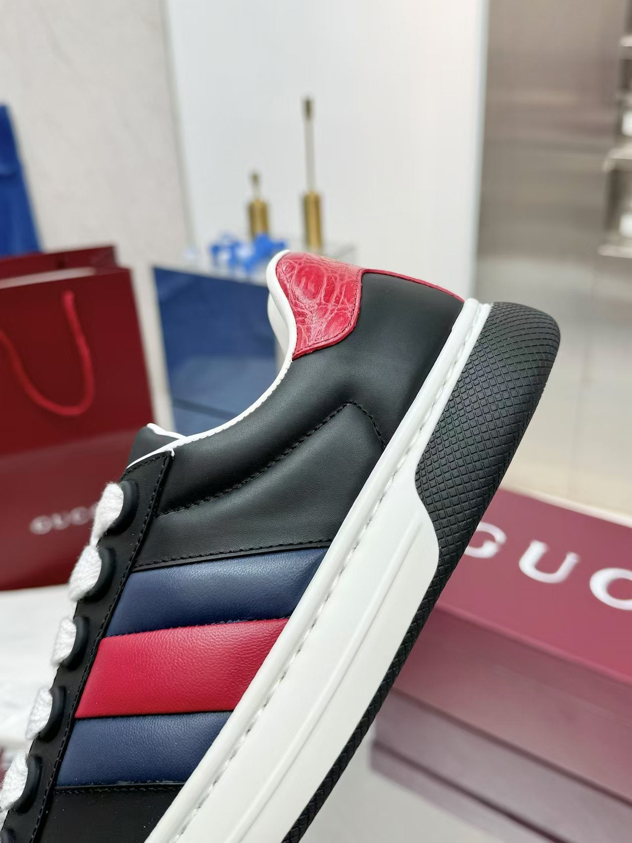GG Men's ACE Sneaker Black Cowhide 574739