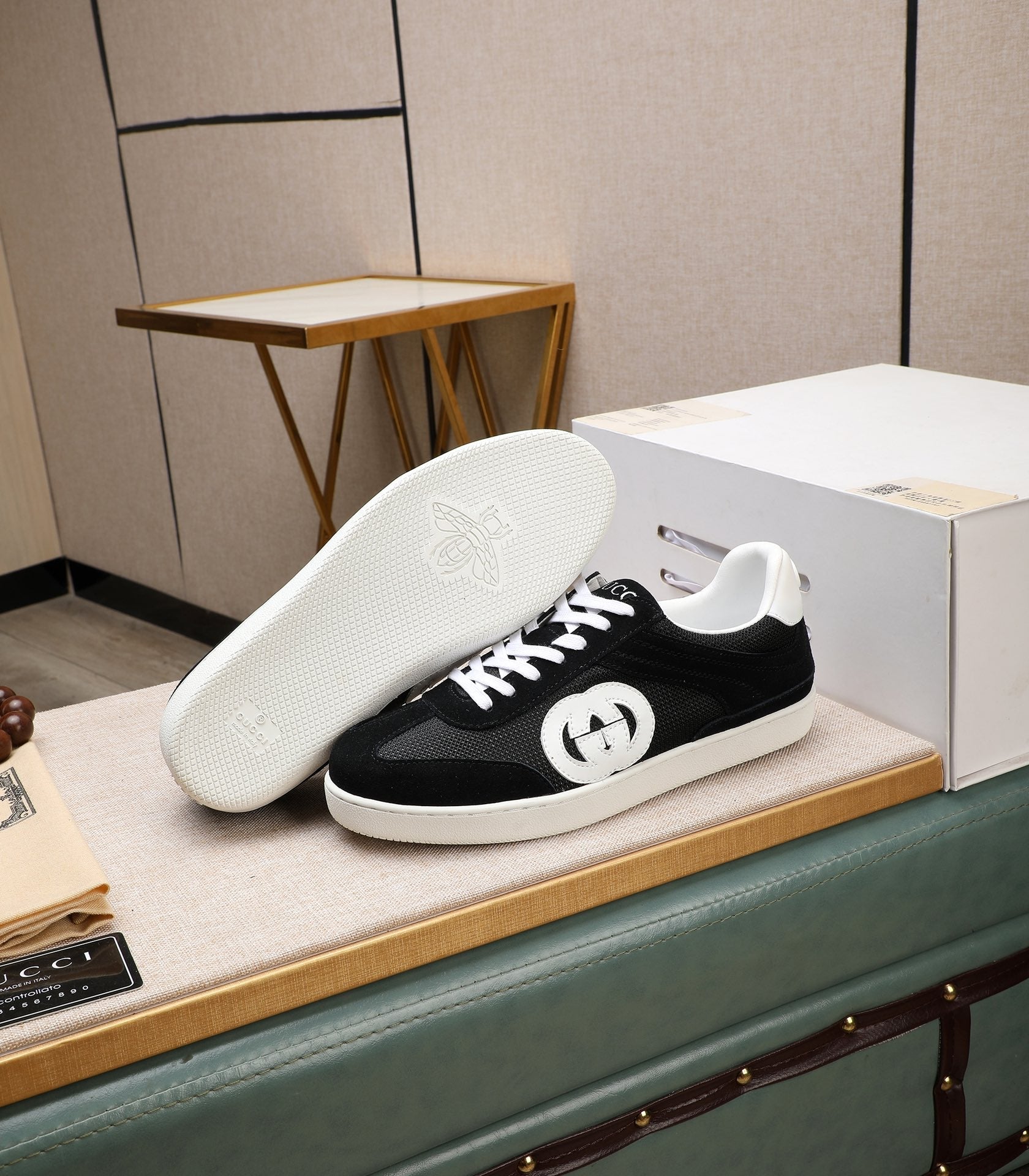 GG Men's G75 Sneaker Black White Mesh Suede 477879
