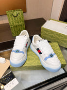 GG Men's Screener Sneaker White Blue Canvas Sheepskin 523602