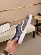 GG Men's Supreme Sneaker Blue Cowhide Printed Fabric 543662