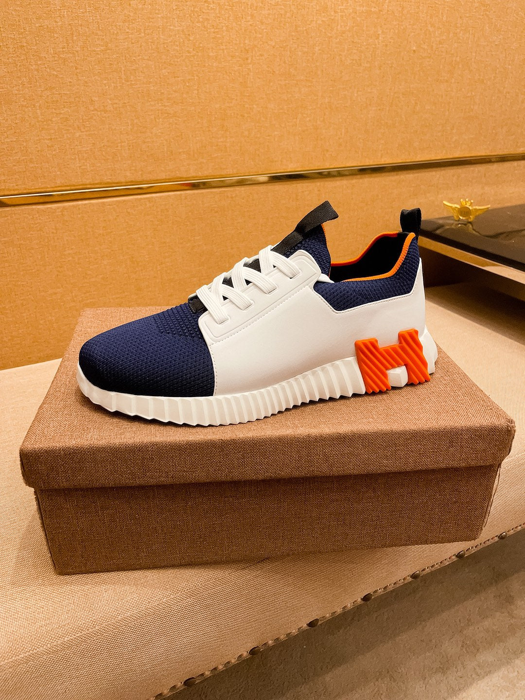HM Men's Depart Slip-on Sneaker White Blue Knit Cowhide 263681