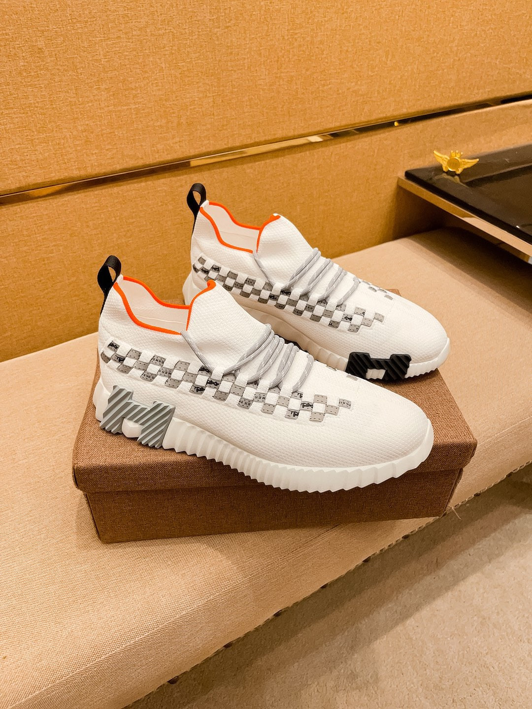 HM Men's Flex Slip-on Sneaker White Knit Cowhide 671701