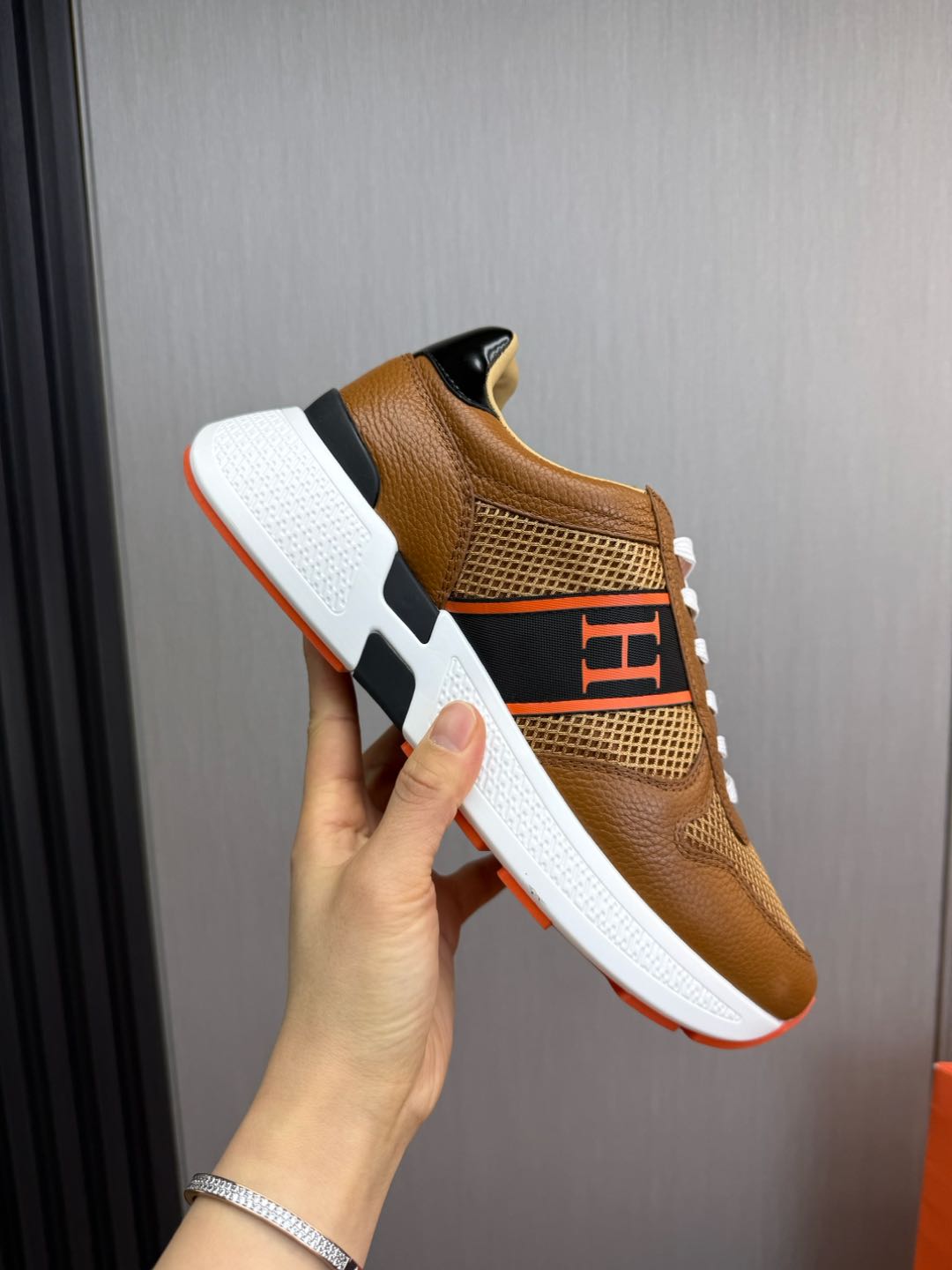 HM Men's Sneaker Brown Mesh Cowhide 519229