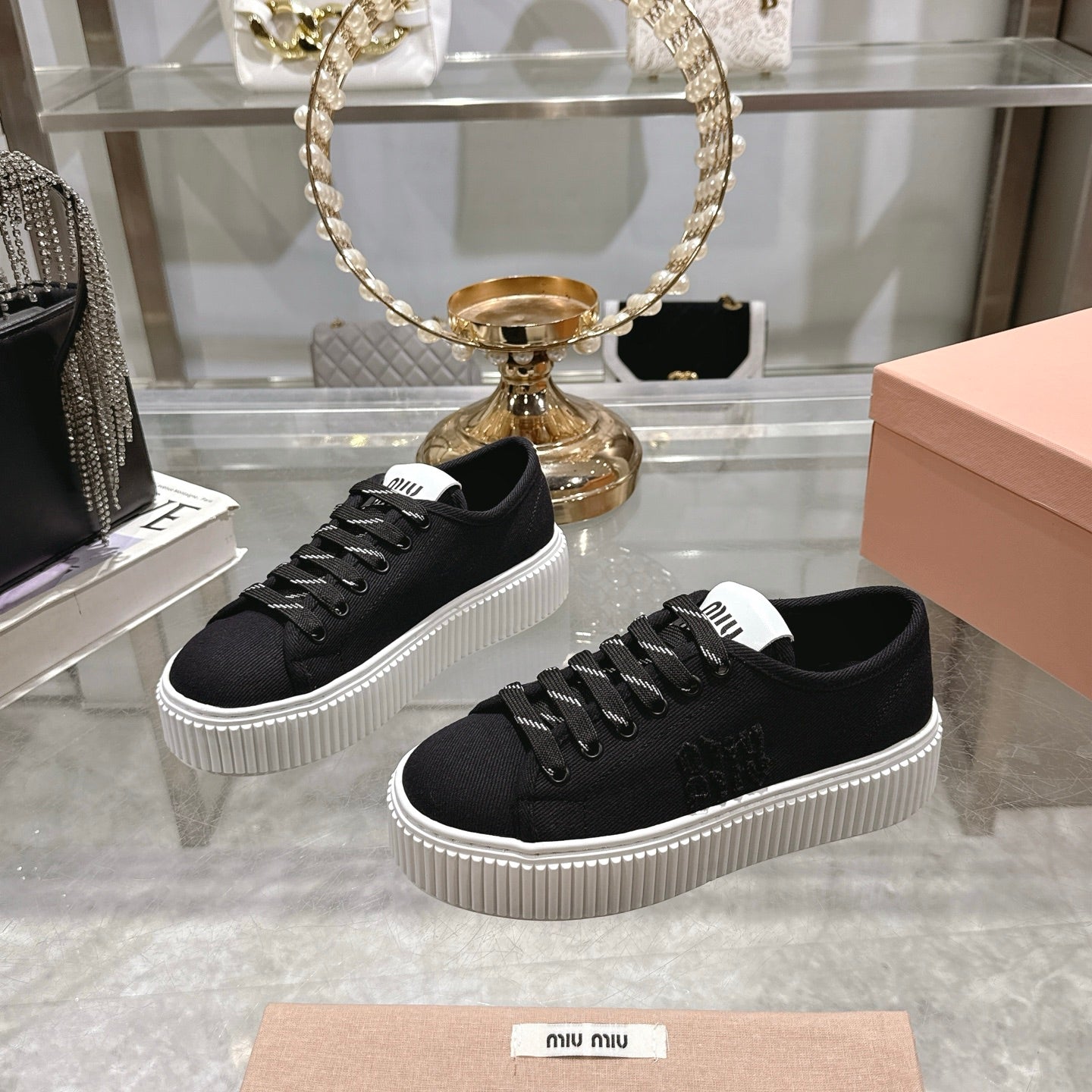 Miu Sneaker with Logo Black Demin Fabric 235313