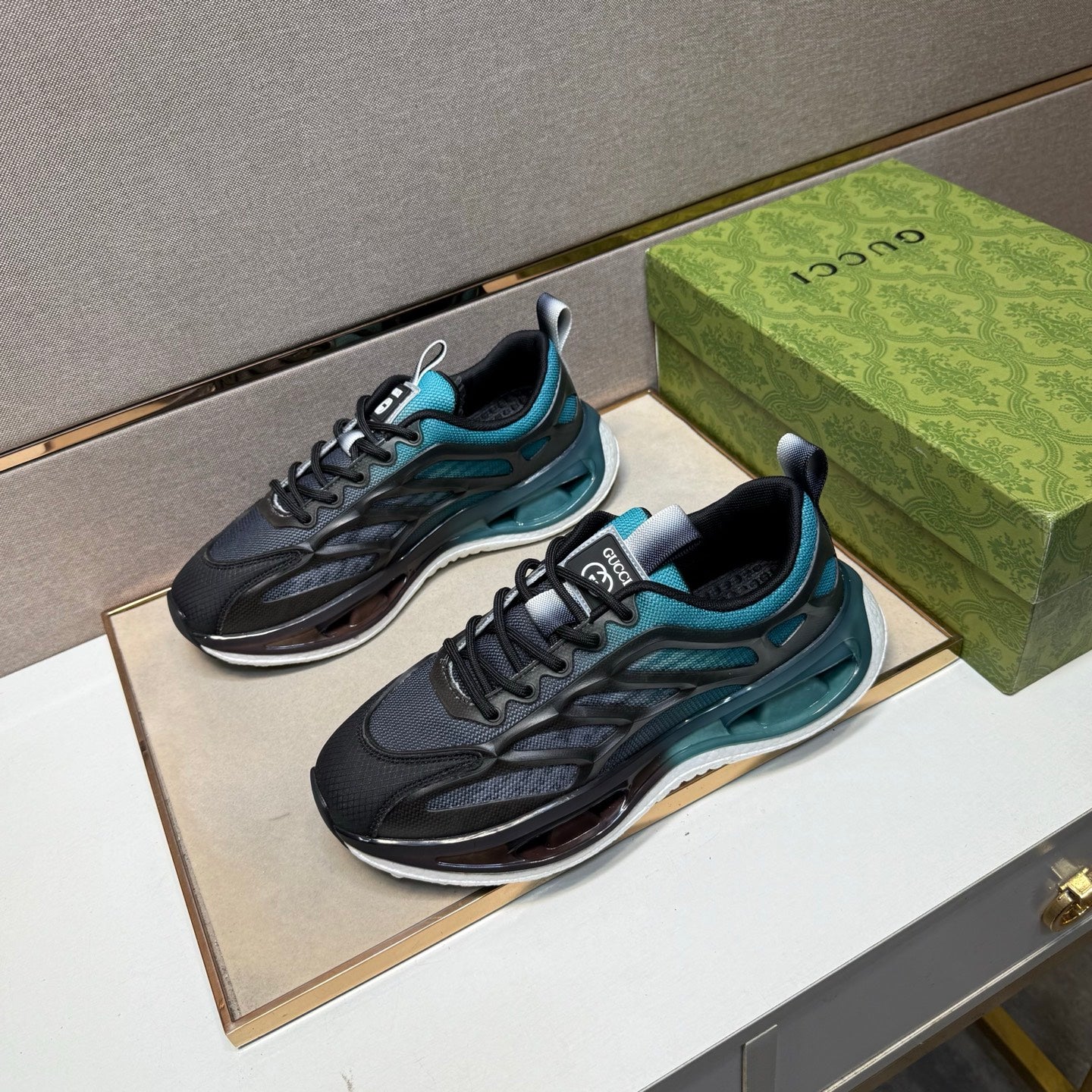GG Men's Re-Motion Sneaker Olive Green Suede Calfskin 719293