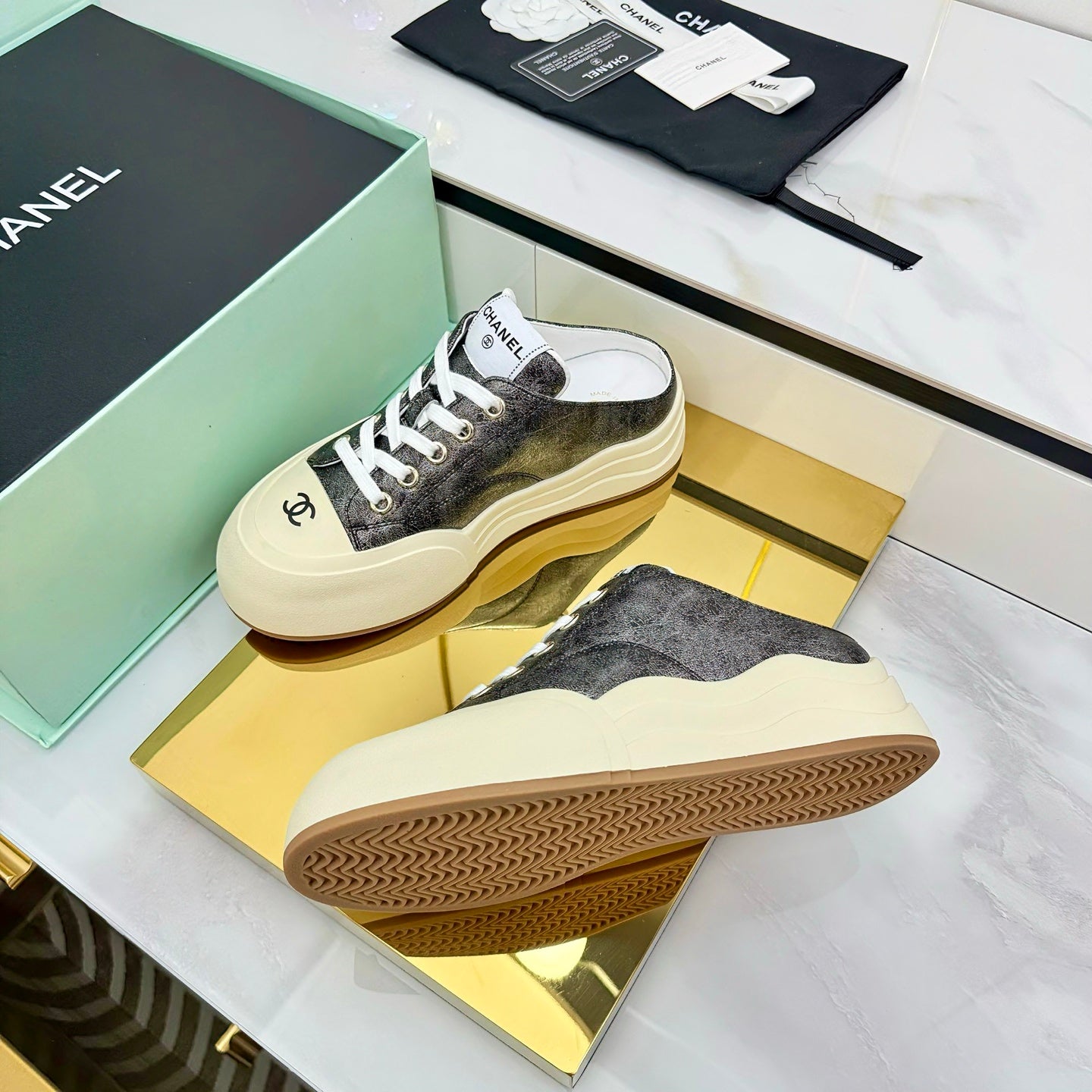 CC 25 Mules Sneaker Sliver Calfskin 331183