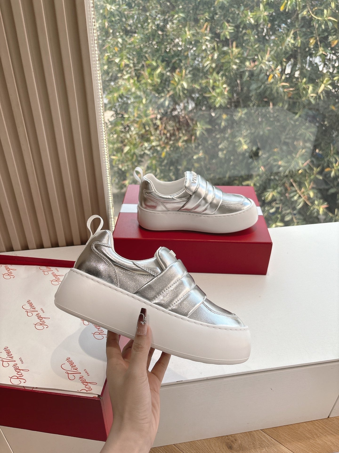 Viv 25 Platform Sneaker Silver Cowhide 358161