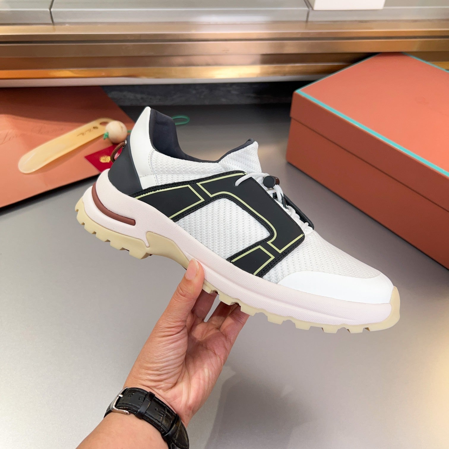 LP BRUNELLO SNEAKERS MULTI-WHITE AND YELLOW MESH CALFSKIN