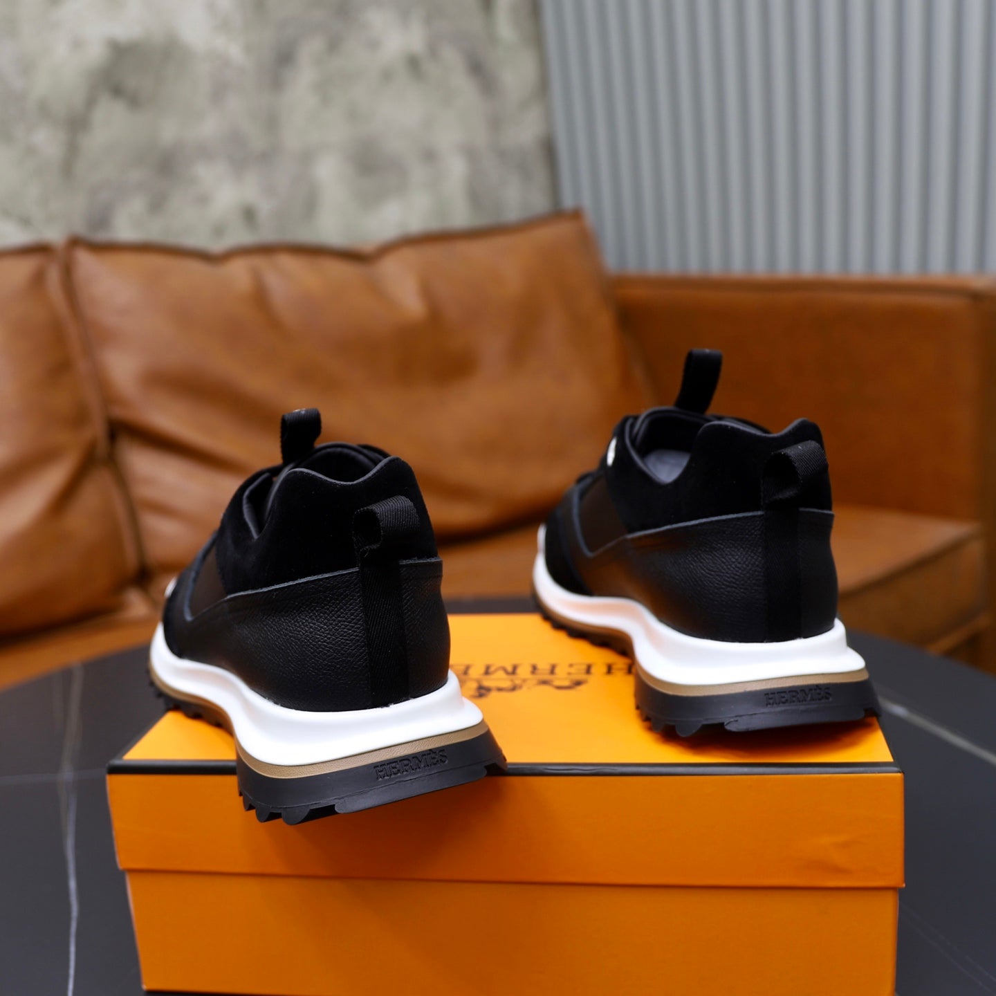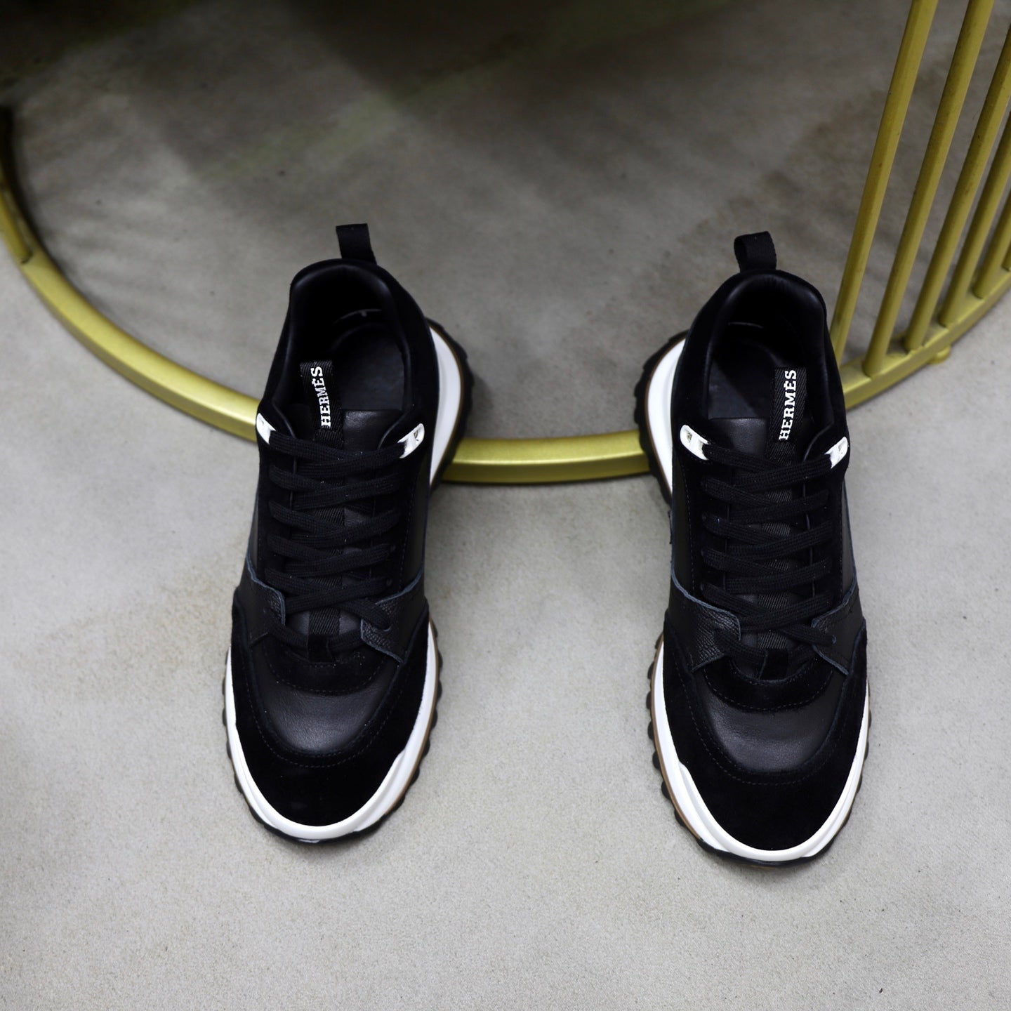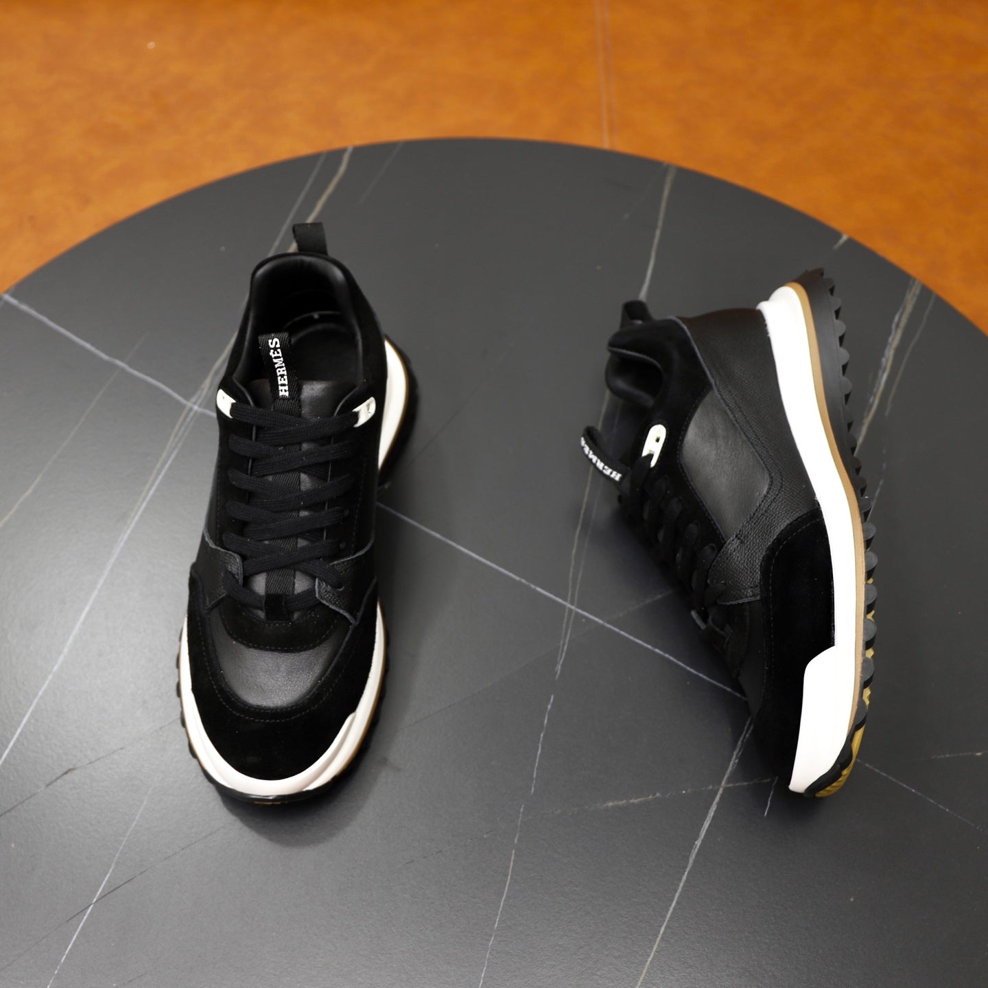 HM Men's Bouncing Sneaker Black White Calfskin Fabric 754131