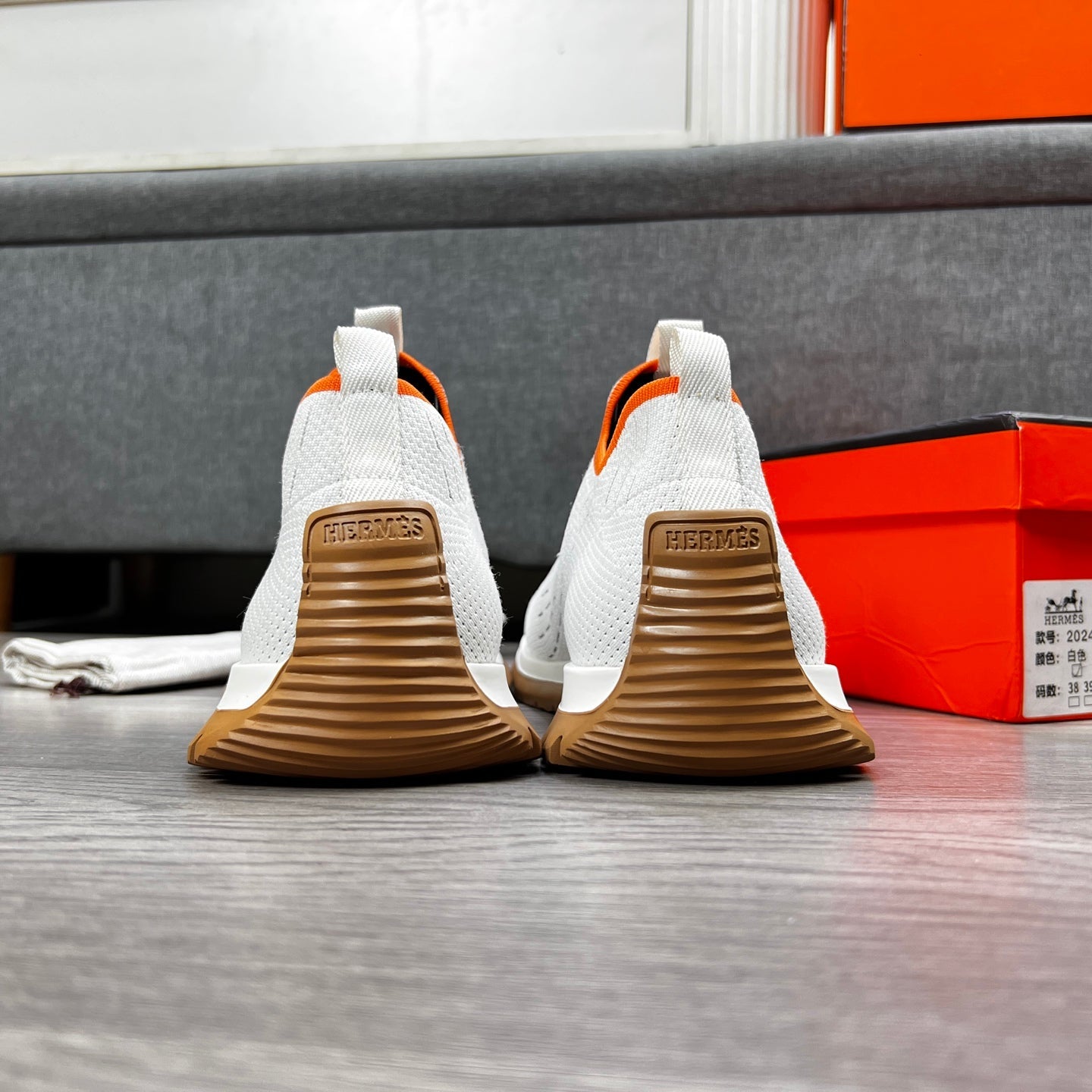 HM Men's Bouncing Sneaker White Brown Calfskin Fabric 754130