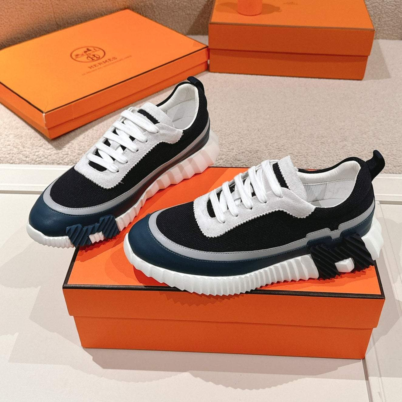 HM Men's Sneaker Multicolor Calfskin Suede 601277