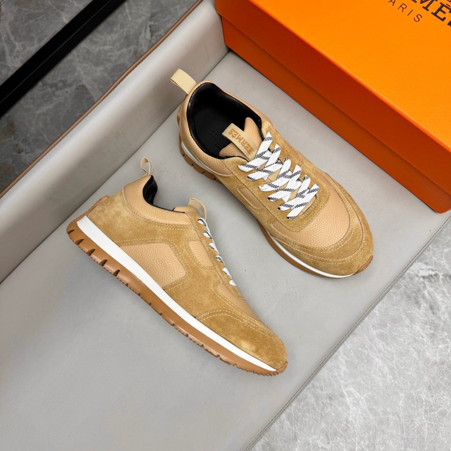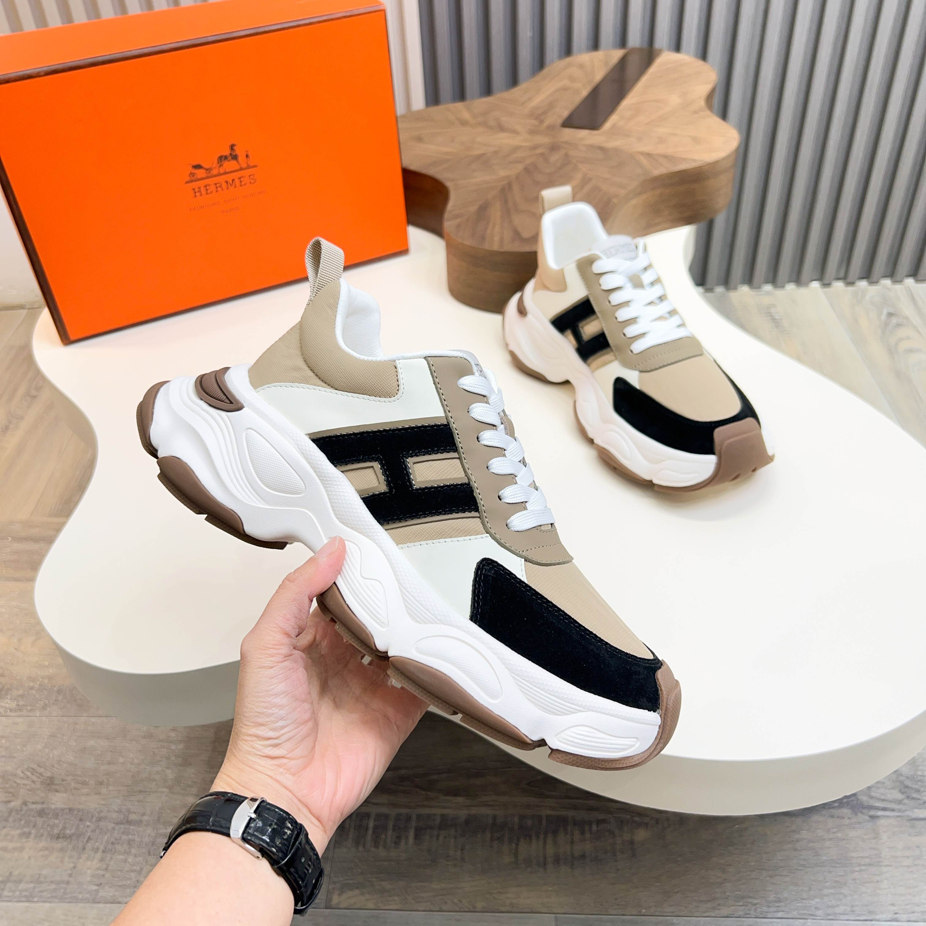 HM Men's Sneaker Beige Cowhide Fabric 603857