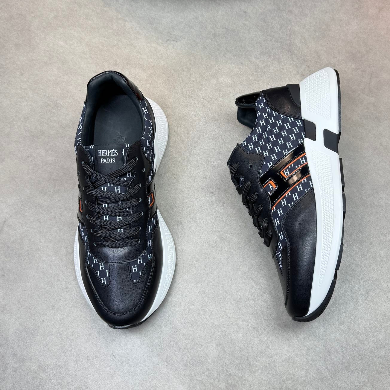 HM Men's Sneaker Black White Calfskin 581691