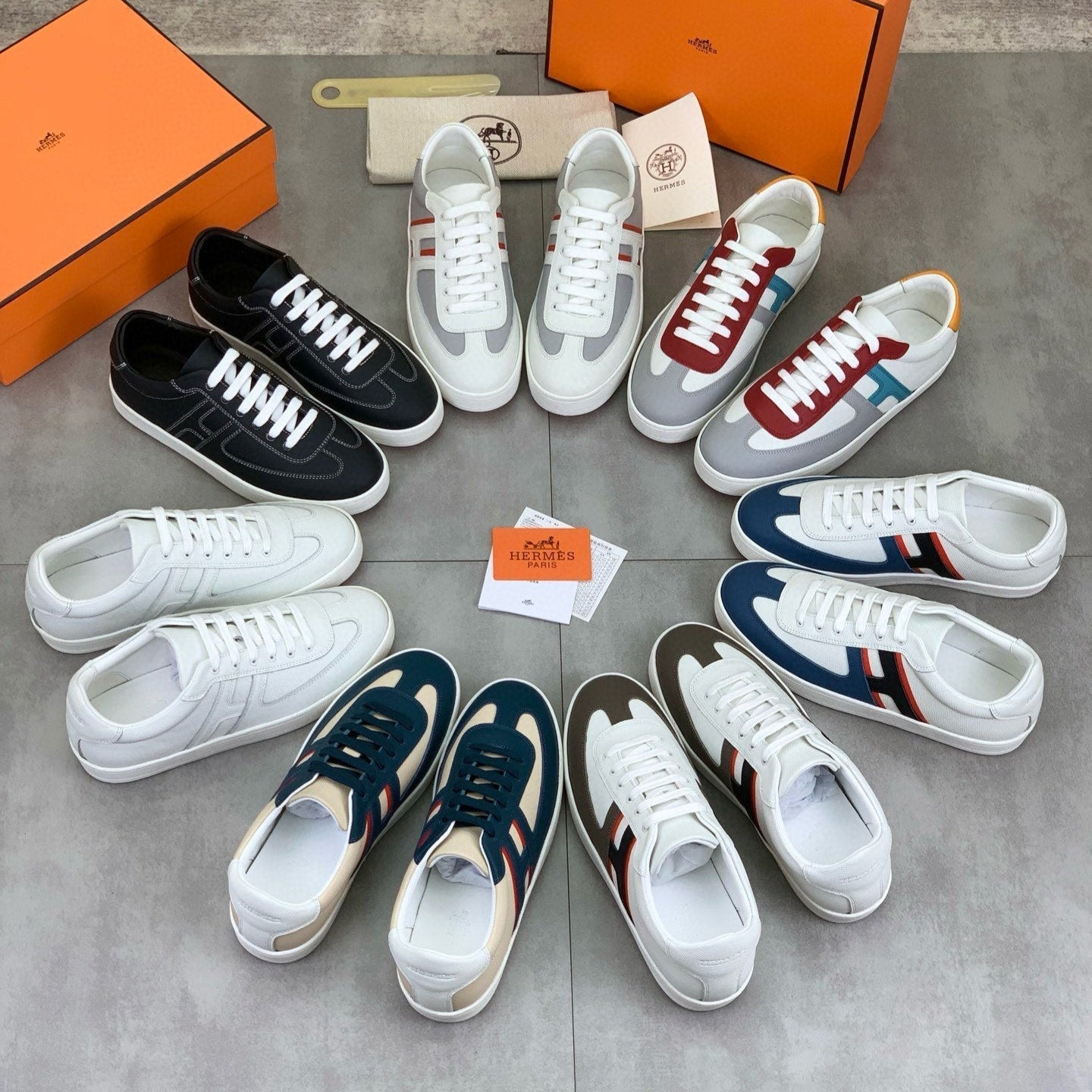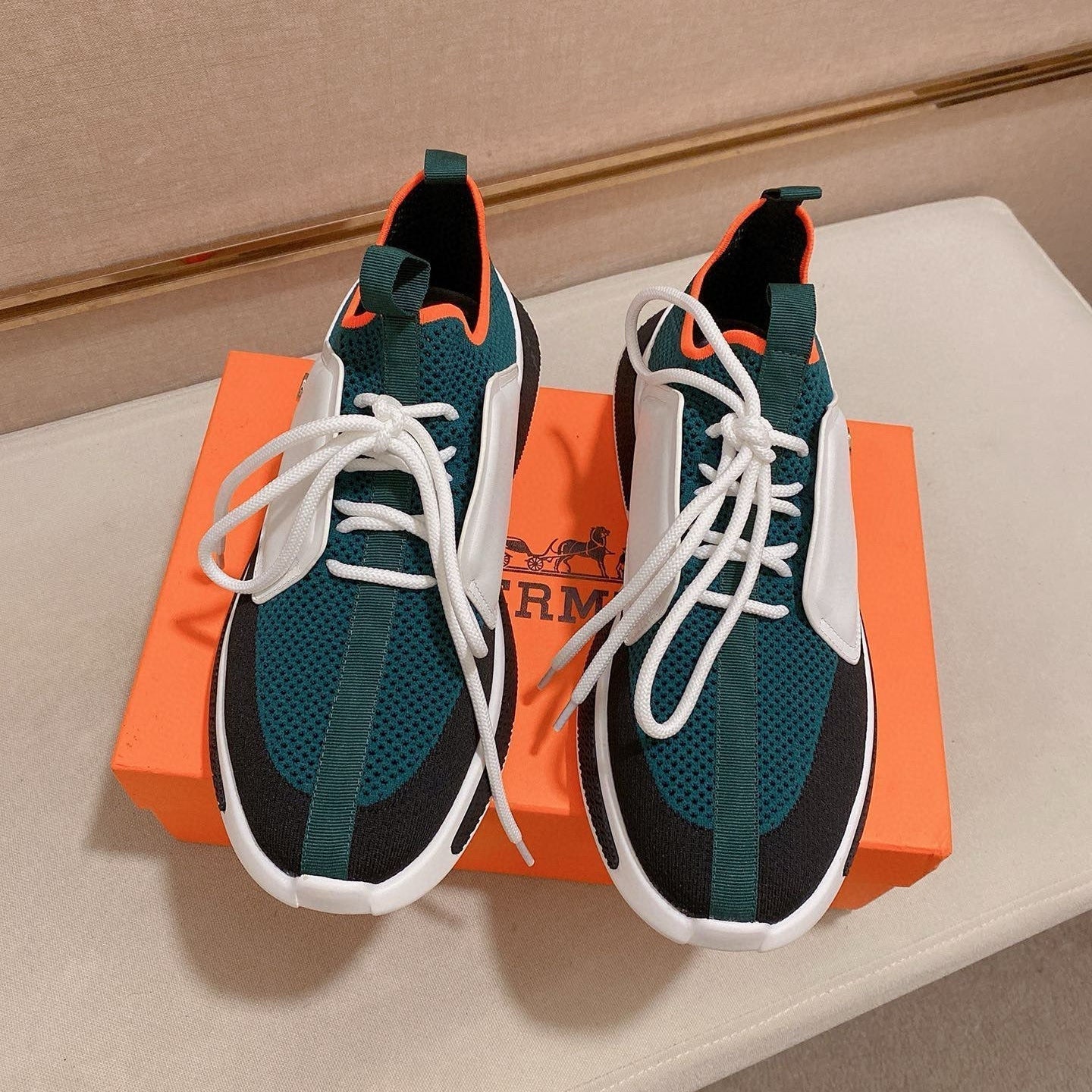 HM Men's Sneaker White Mix Orange Cowhide 564408