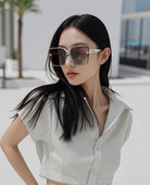 EMBOSSED LOGO GEOMETRIC FRAME SUNGLASSES G4250 IN ACETATE