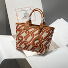 HM Steeple 28 Bag Brown Calfskin White Brown Canvas