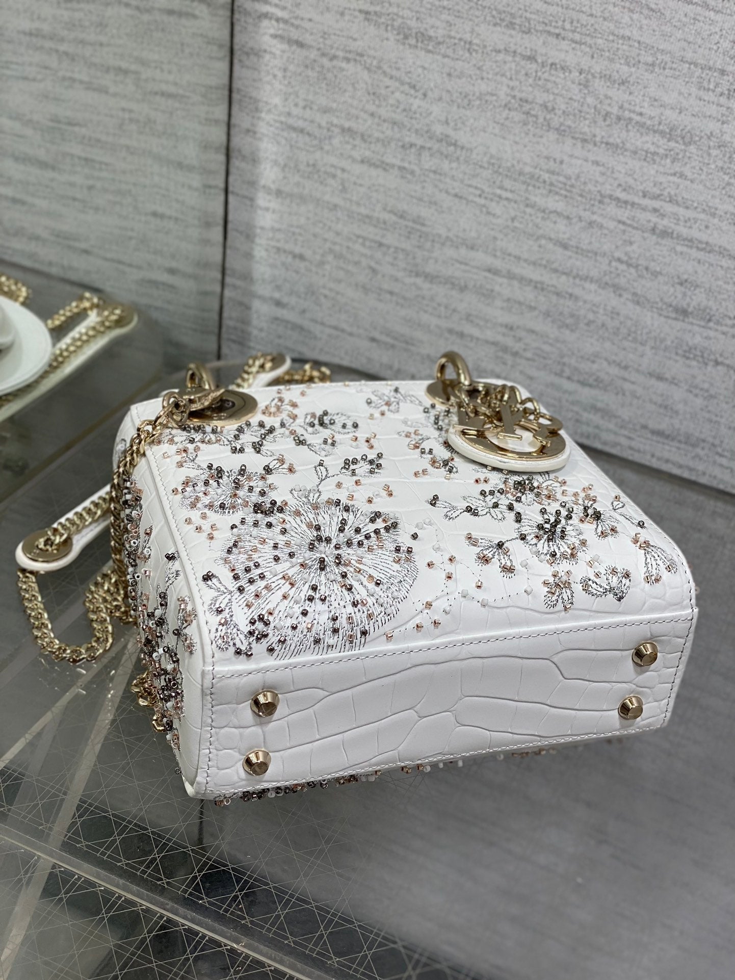 Lady Bag 17cm White Crocodile Leather