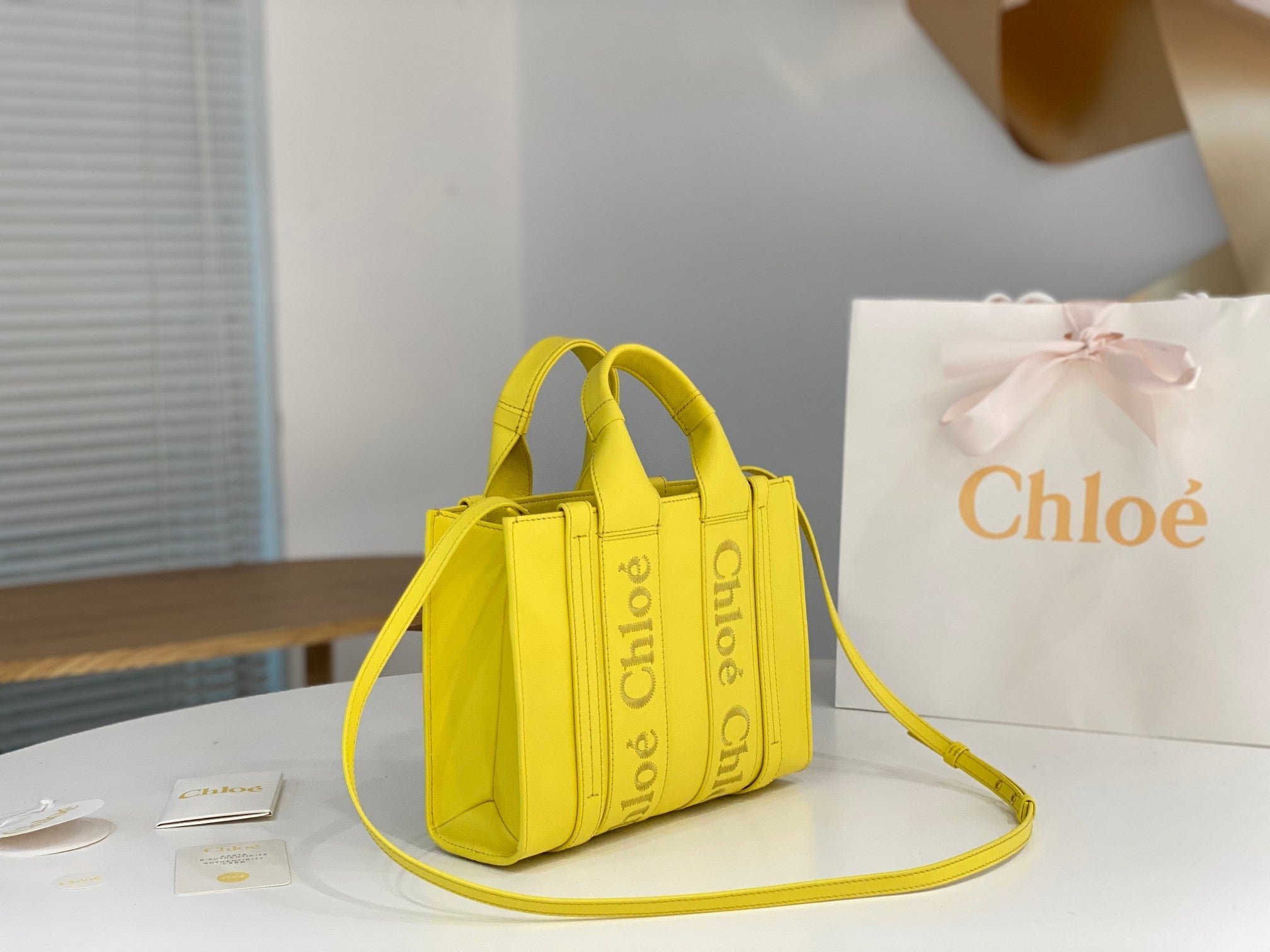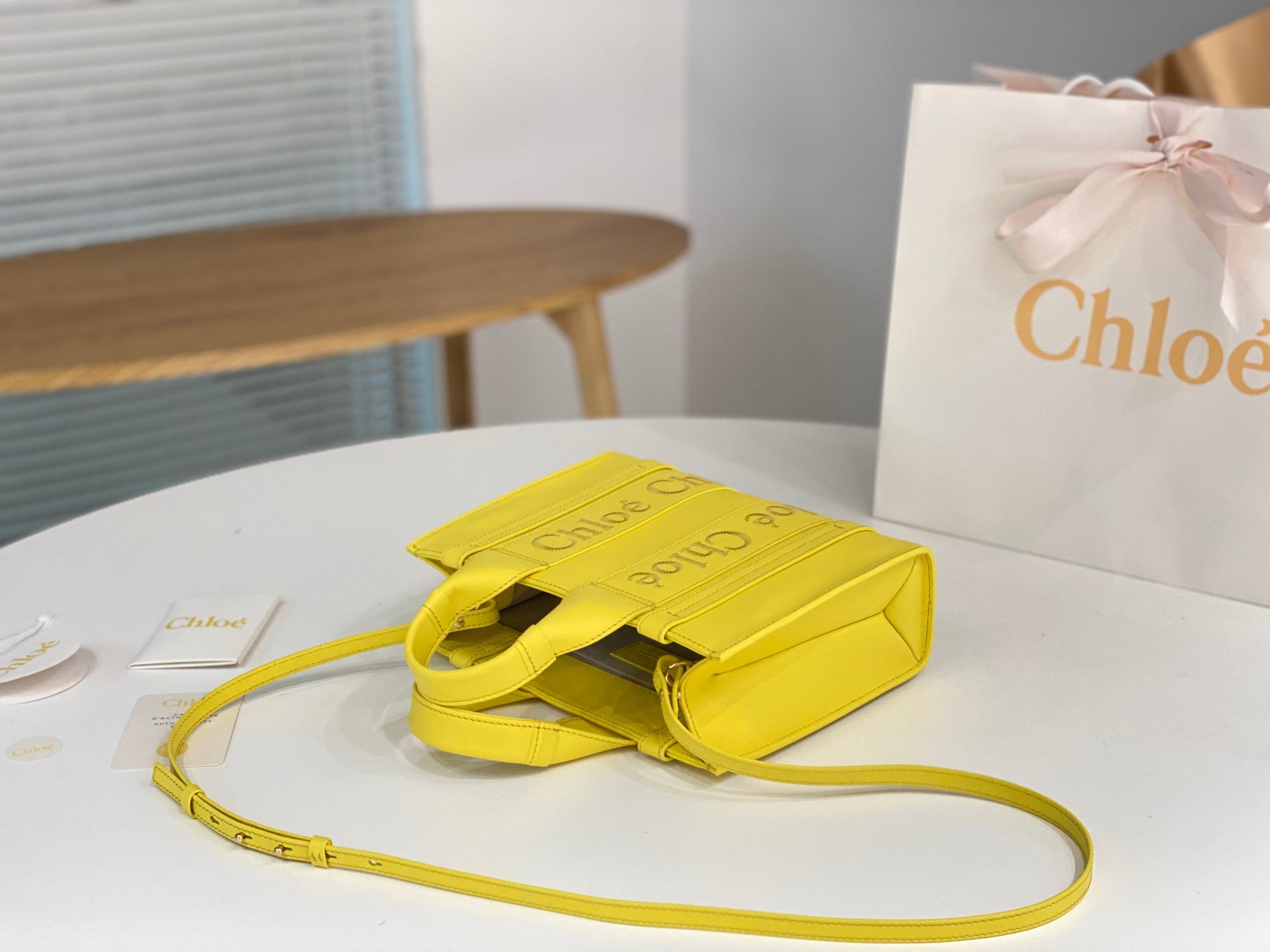 Chloé Woody tote bag yellow calfskin