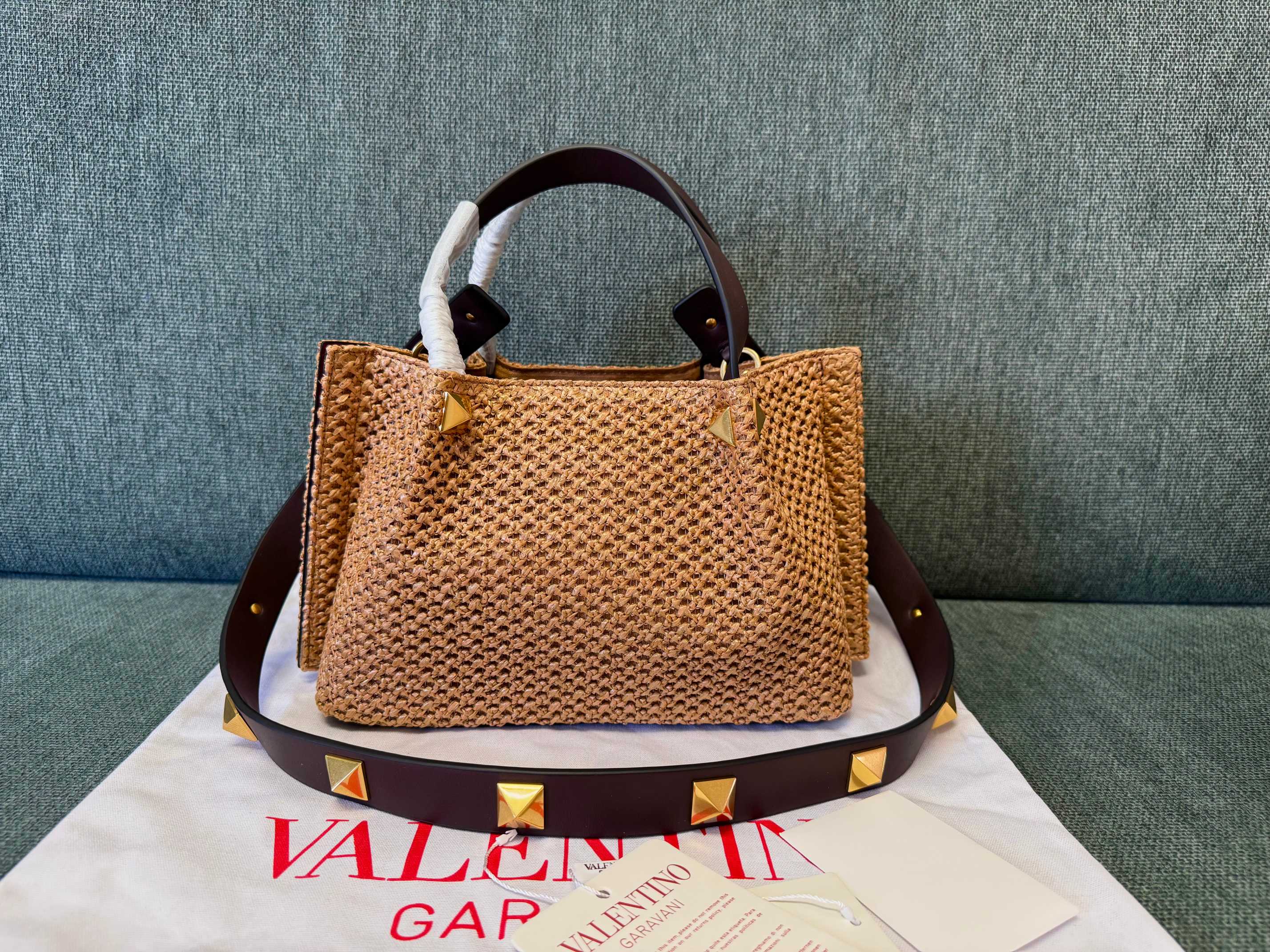 Valentino Spring and Summer 25 Tote Bag Brown Raffia