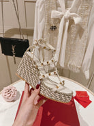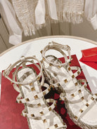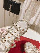 Rockstud Ankle Strap Wedge Sandal Calfskin White 10cm