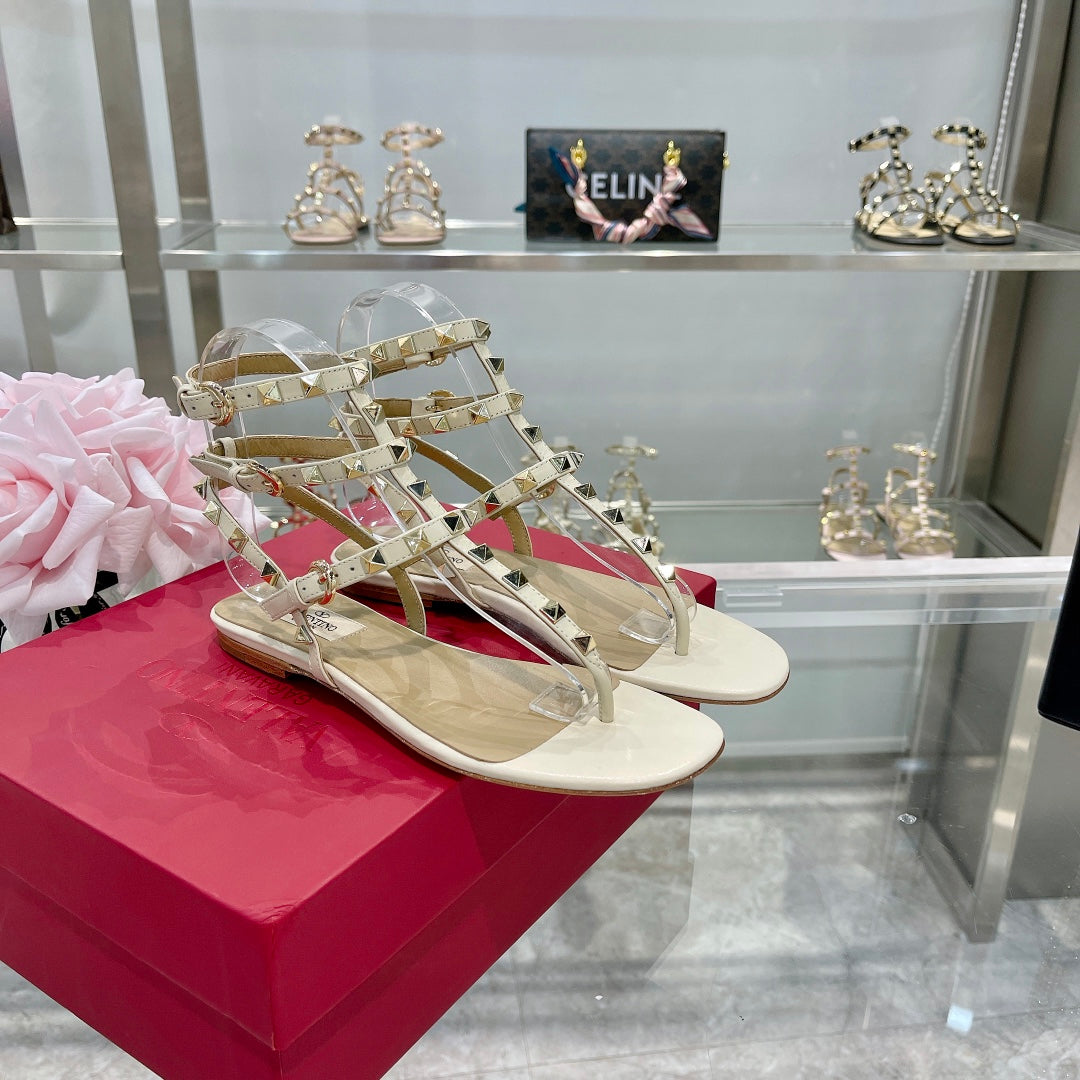 ROCKSTUD THONG SANDAL WITH STRAPS IN WHITE CALFSKIN