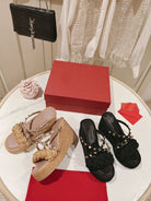 Rockstud Wedge Sandal In Calfskin Leather Black 10cm