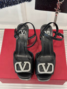 Sandal With Vlogo Signature Platform In Black With Stone Calfskin 110mm 989465