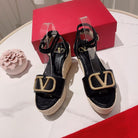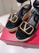 VLogo Signature Calfskin Wedge Sandal 90mm Black