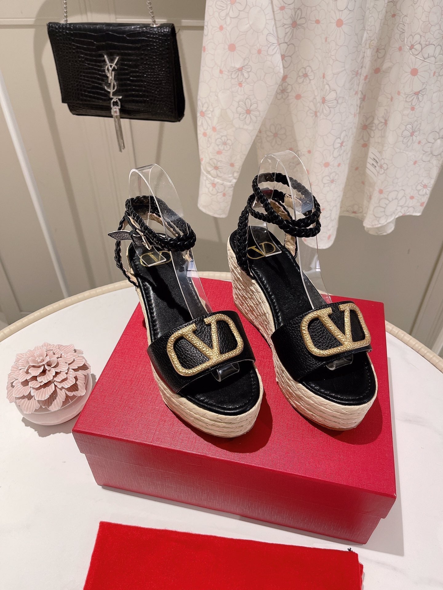 - Nylon rope wrapped wedge heel-10cm waterproof platform-5cm
