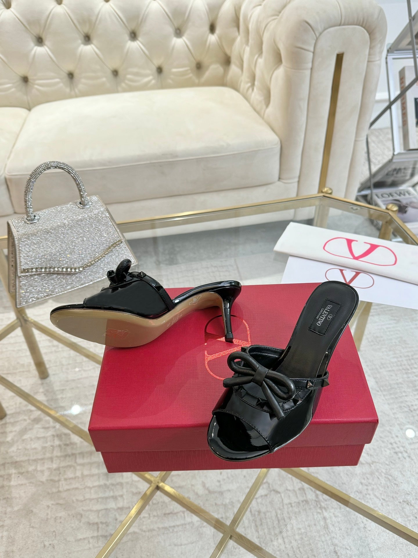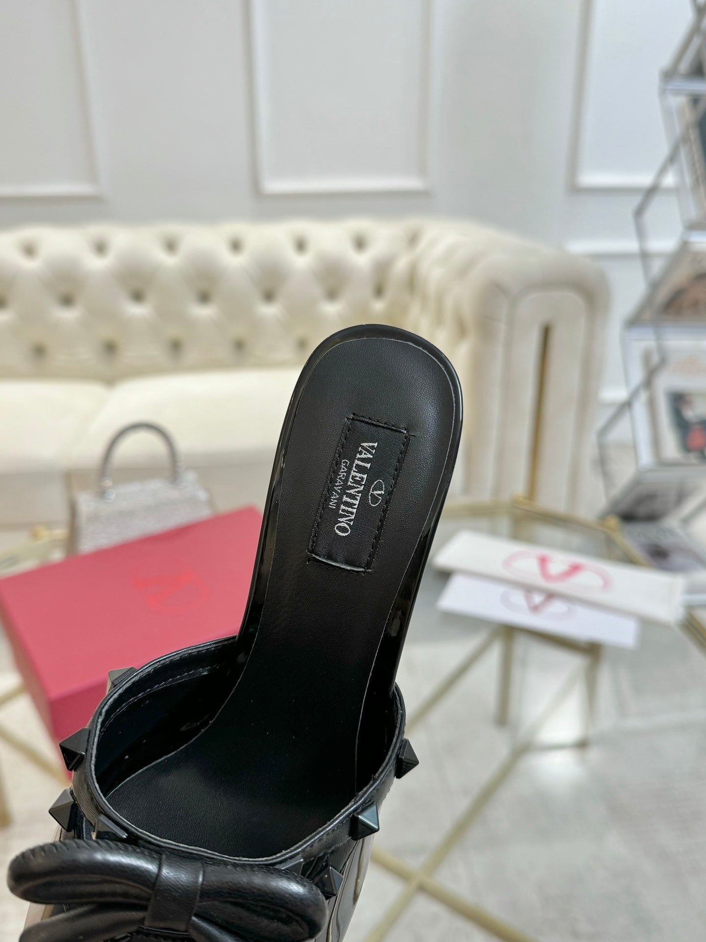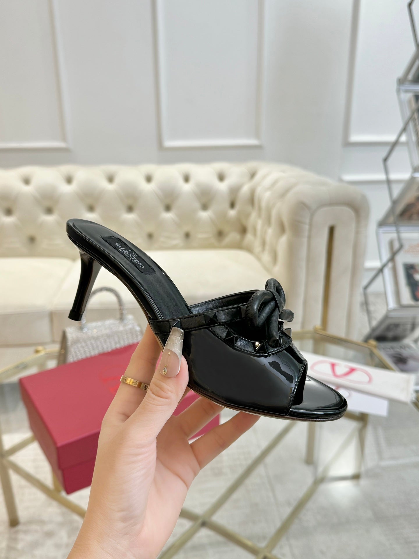 VT 25 Rockstud Bow Mule Black Patent Leather 342075