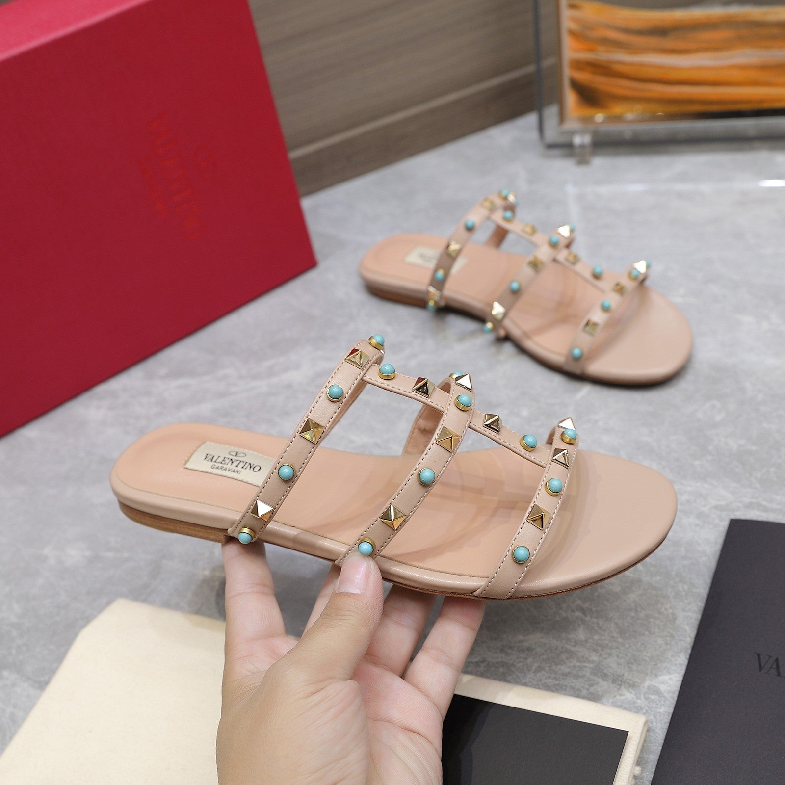 VT 25 Rockstud leather slides Nude Sheepskin 289662
