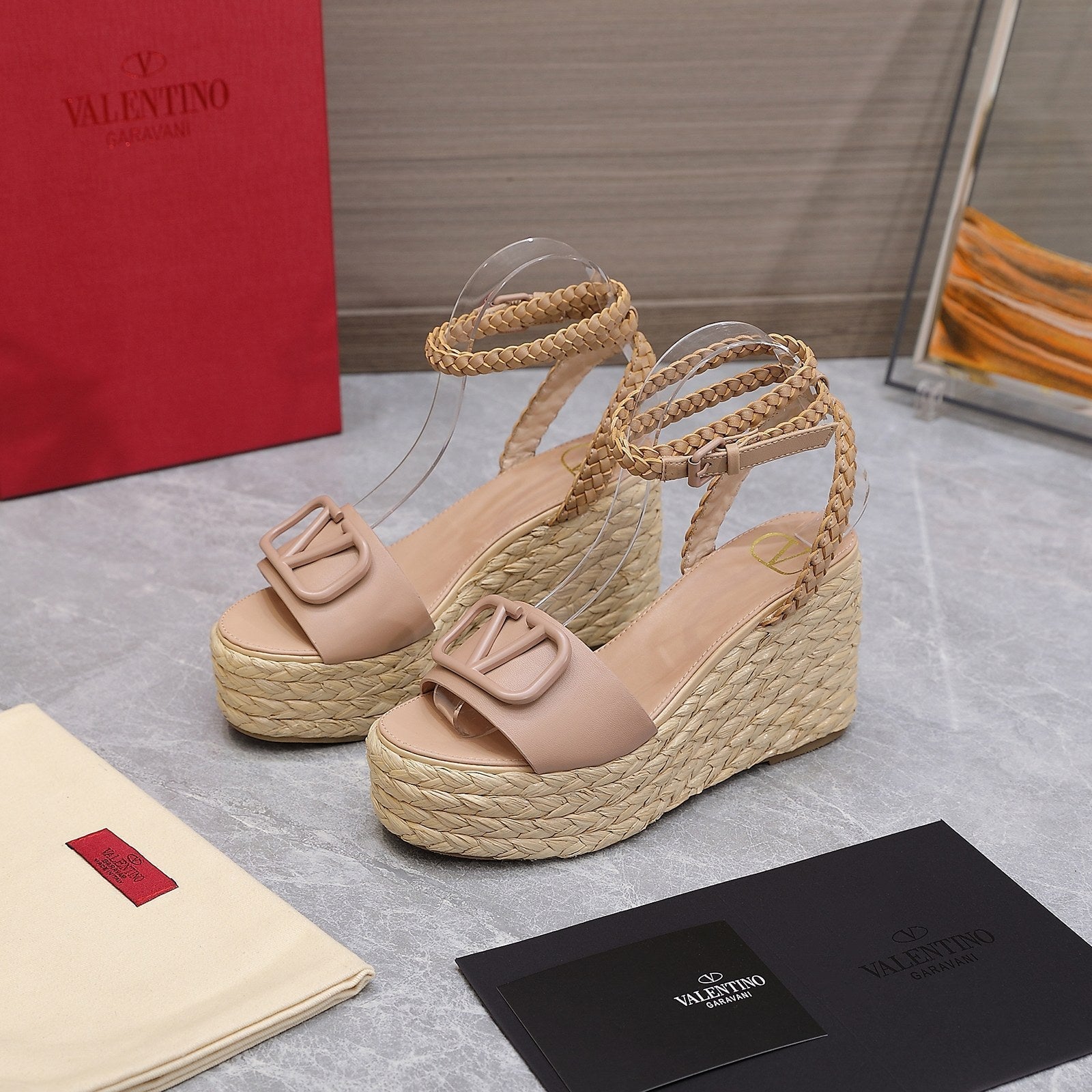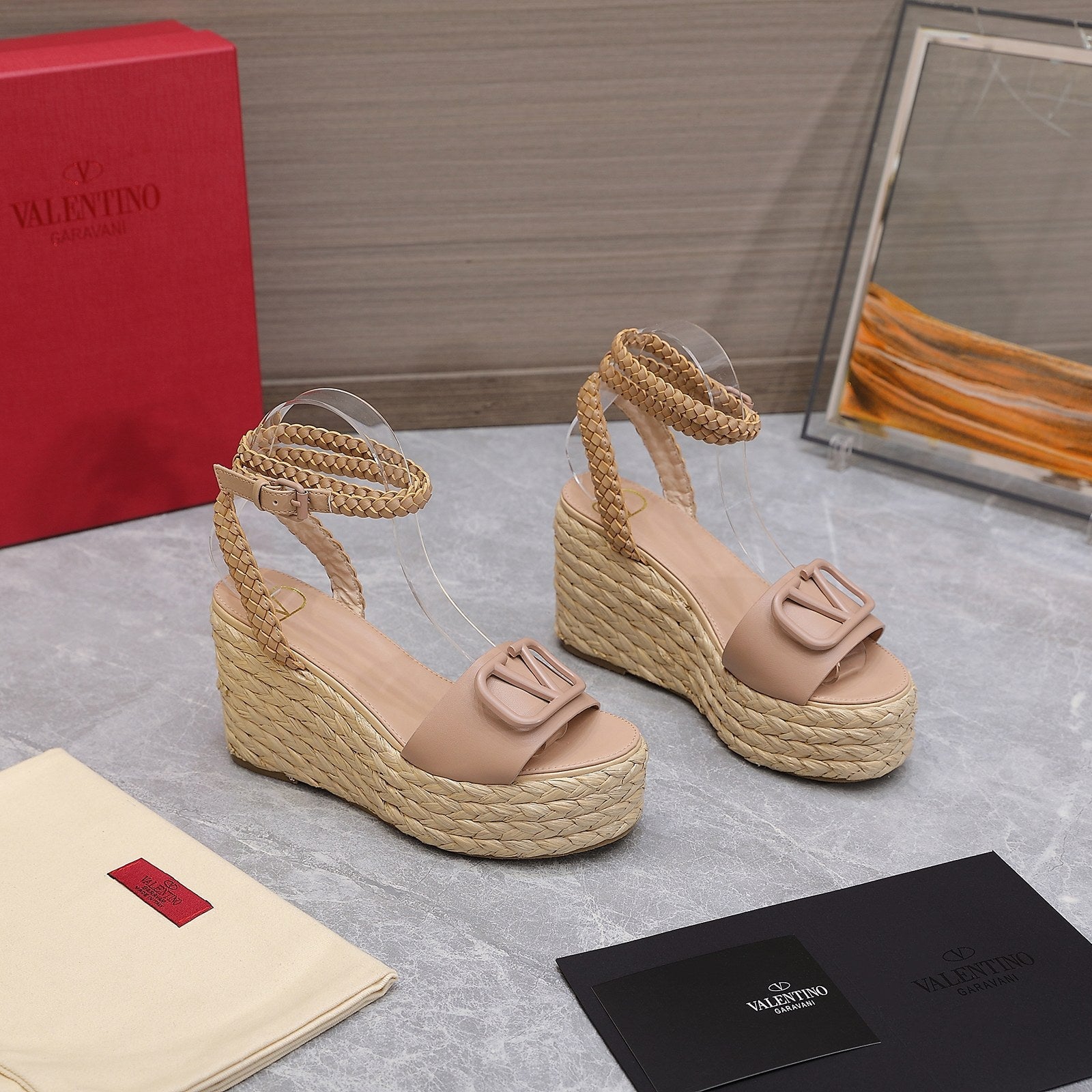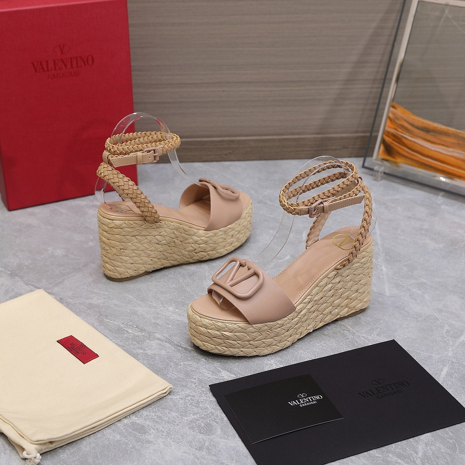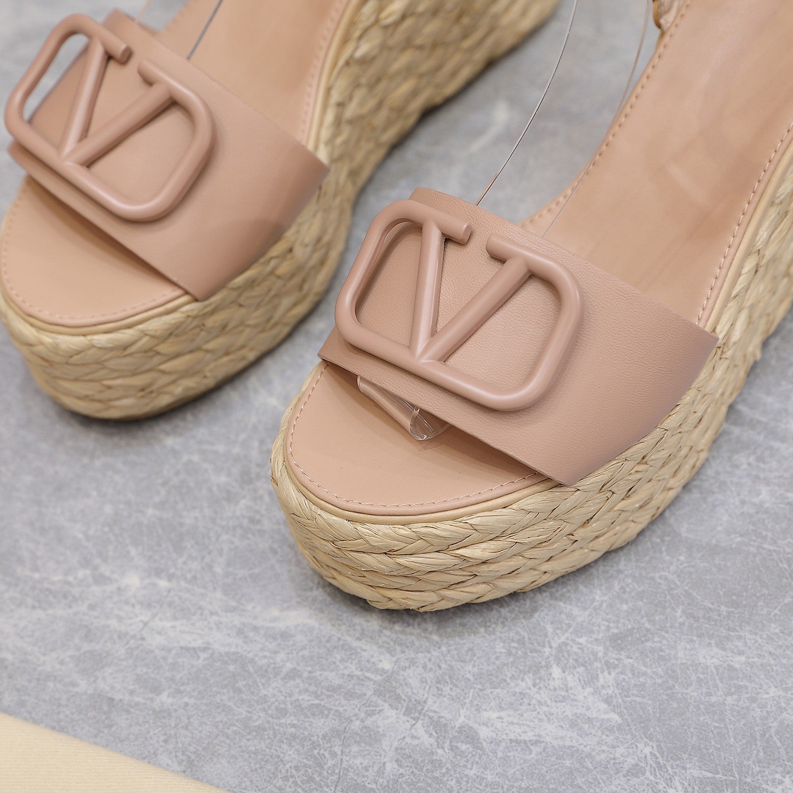VT Wedge Platform Sandals Nude Cowhide Espadrilles