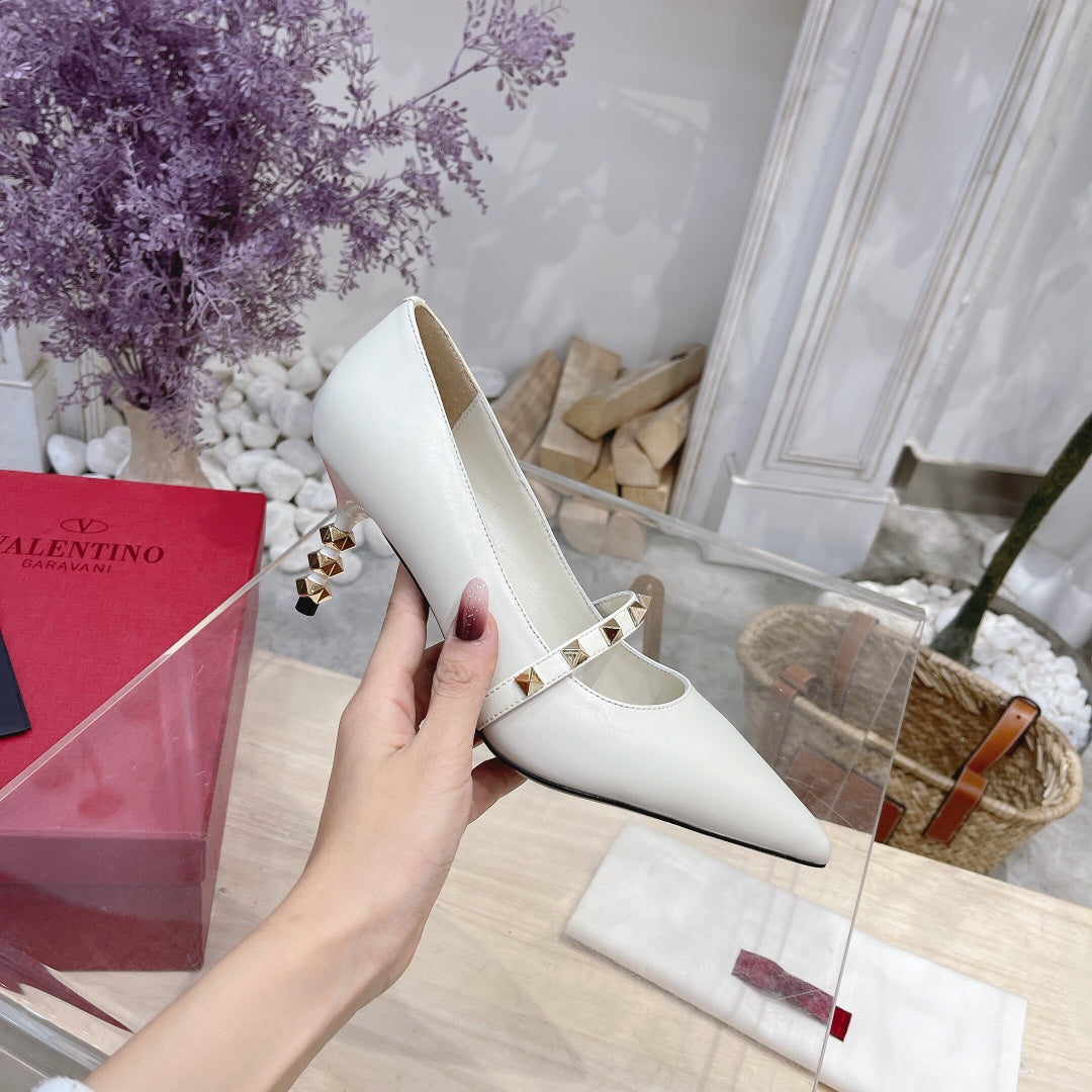 VT 25 Rockstud Flat Sandals White PVC Sheepskin 331947