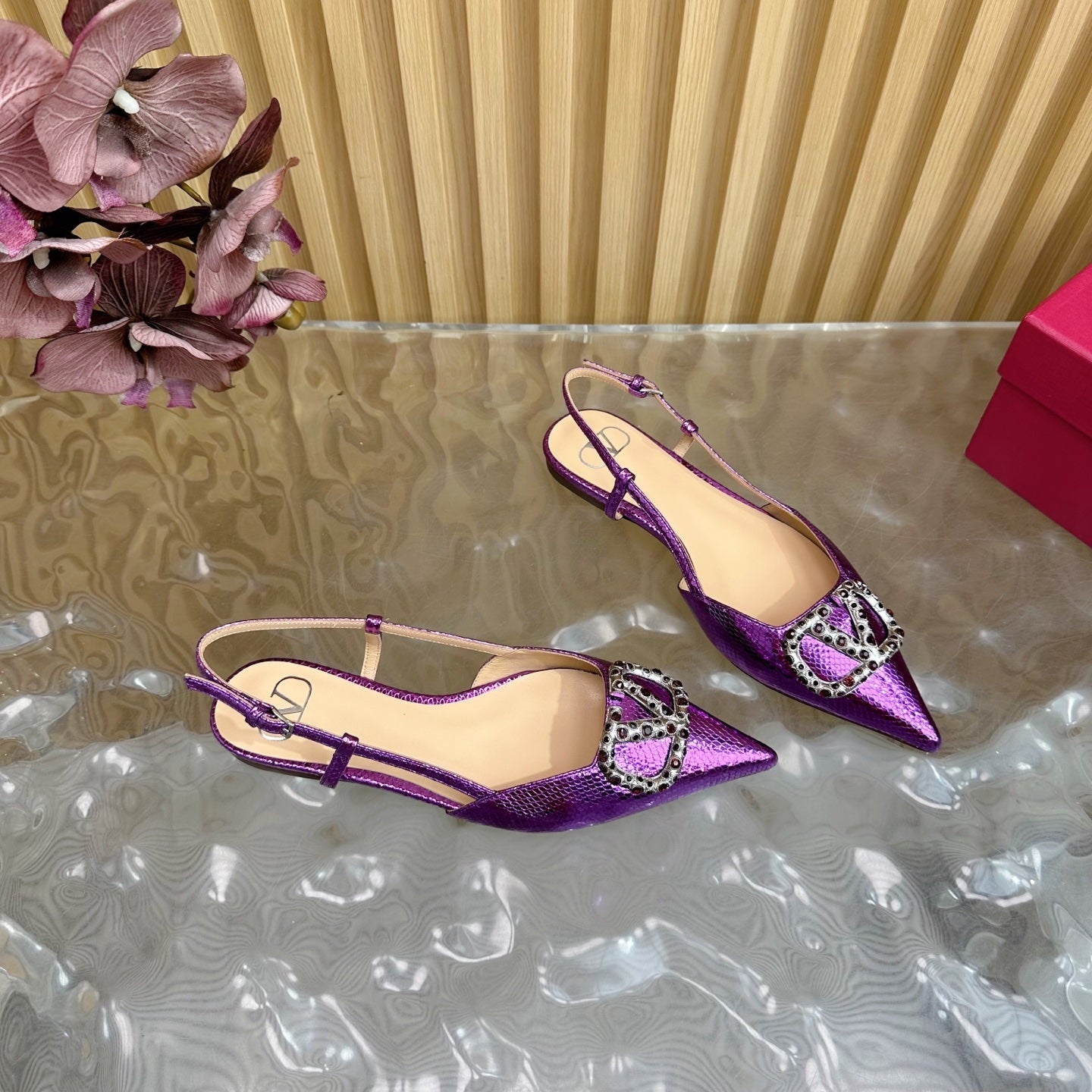 VT Slingback Flat Pink Snake-grain Leather 331936