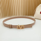 Vlogo Buckle Water Wave Gold Copper Glossy Beige Leather 20mm Belt