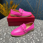 LEISURE FLOWS SPLIT LOAFER IN BRIGHT PINK CALFSKIN