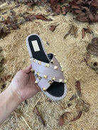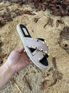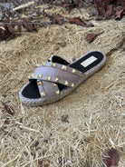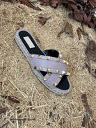 Rockstud Crisscross Espadrilles 20mm Sandal Wedges Black Purple