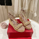 Garavani Rockstud Wedge Sandals 100mm In Beige Mix Rosy Brown Calfskin And Nylon Rope 829396