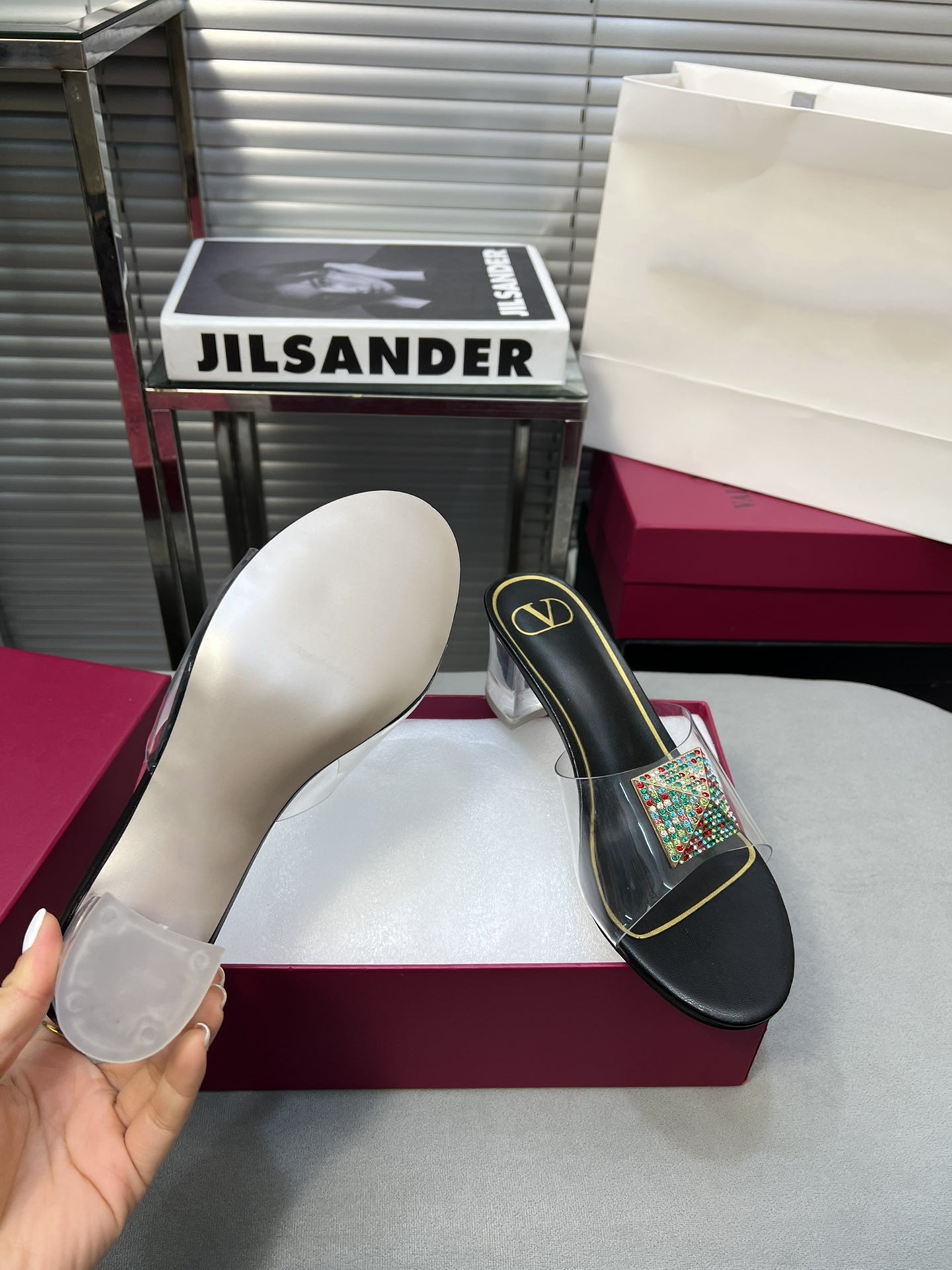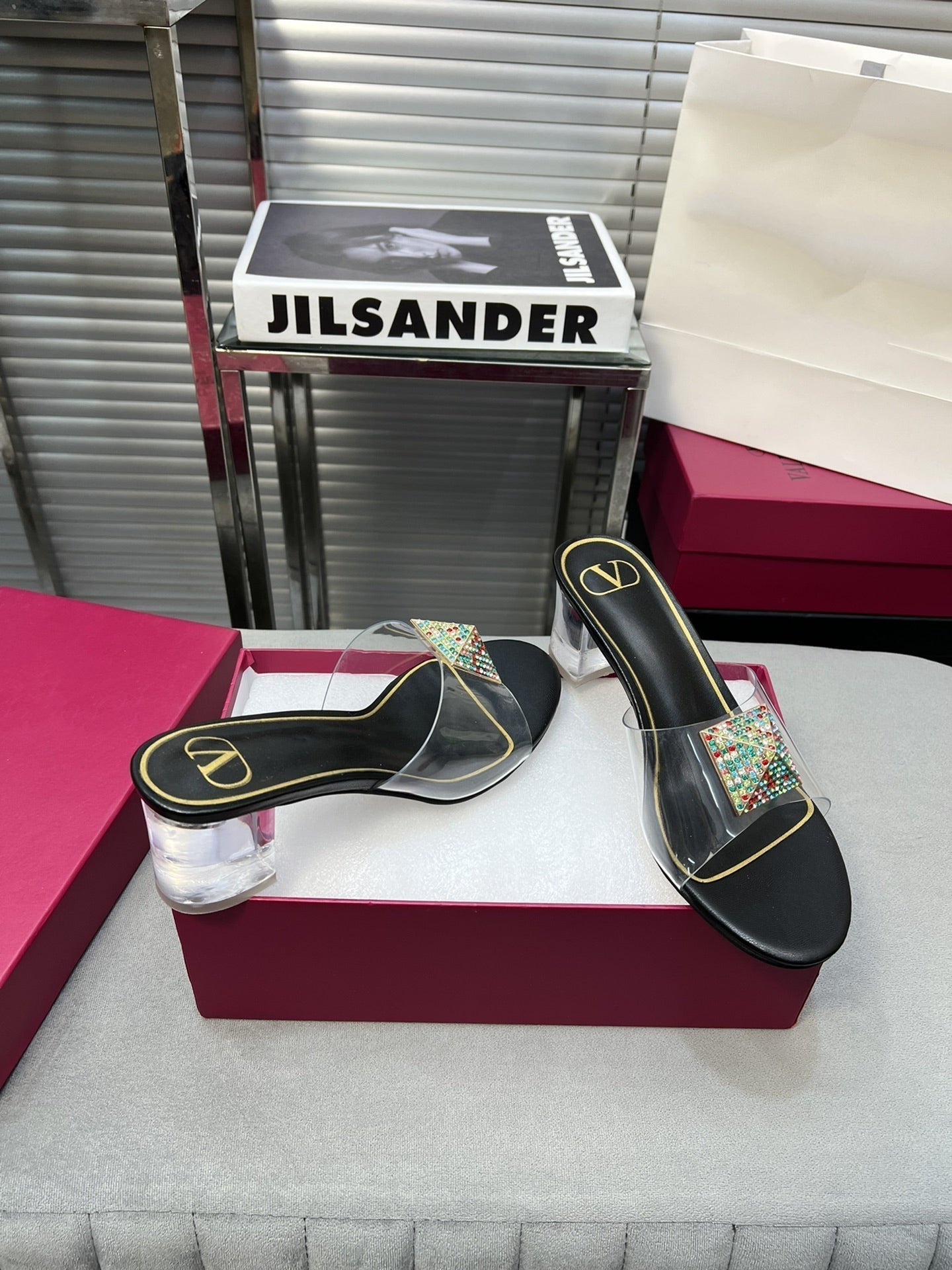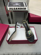 Heeled Sandals 6cm with Crystal Square Buckle Black