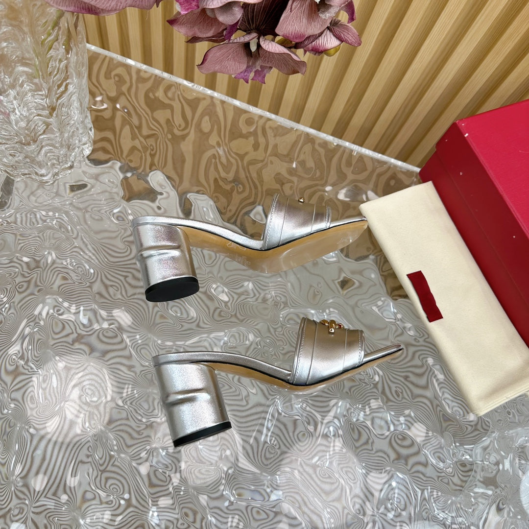 High Heel 70 Mule Sandal The Bold Edition Vlogo Square Toe Silver