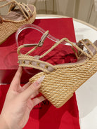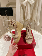 Rockstud Flatform Sandal 10mm In Beige Mix Rosy Brown Calfskin And Nylon Rope 829394