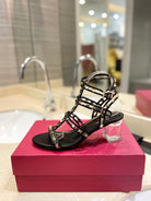 ROCKSTUD SANDAL WITH STRAP IN BLACK CALFSKIN 60 MM