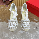 Valentino Wedge High Heel Lace-Up Sandals 85mm In Brown Grey Mix White Canvas Fabric And Raffia 814613