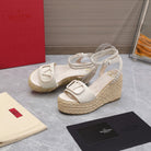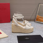 VT Wedge Platform Sandals White Cowhide Espadrilles