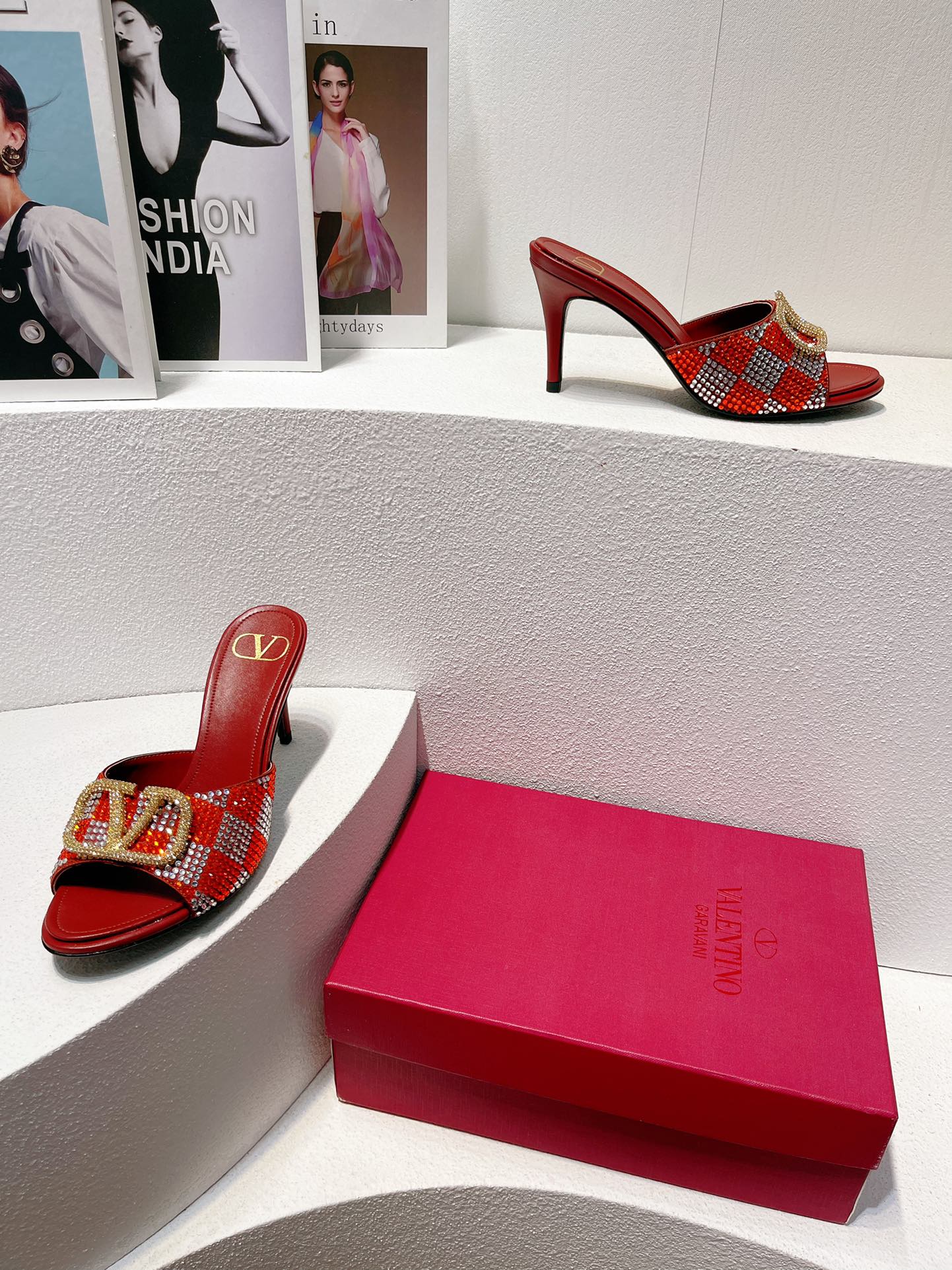 VT High Heeled Sandals Red Sheepskin 292849