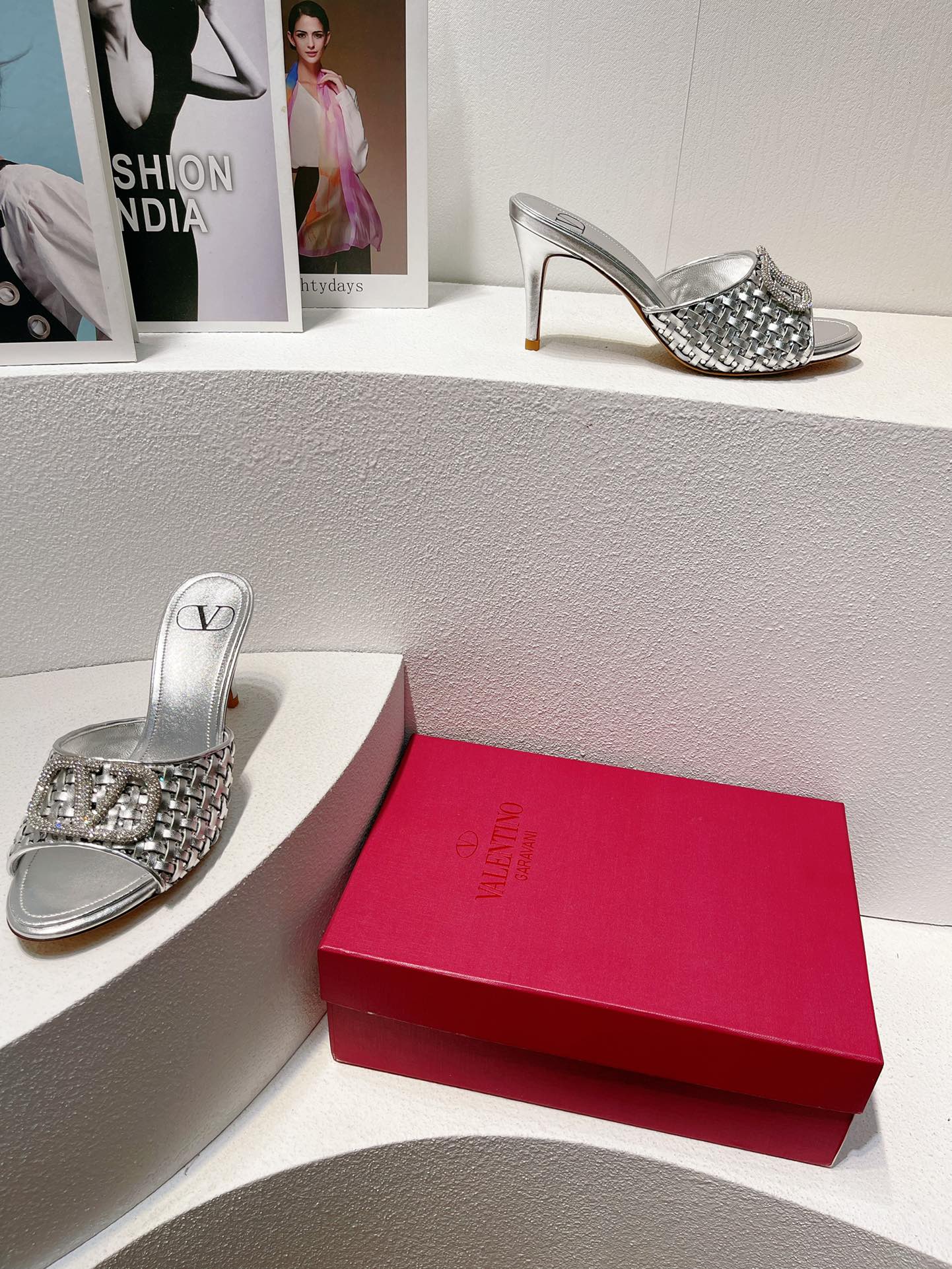 VT High Heeled Sandals Silver Sheepskin 292798