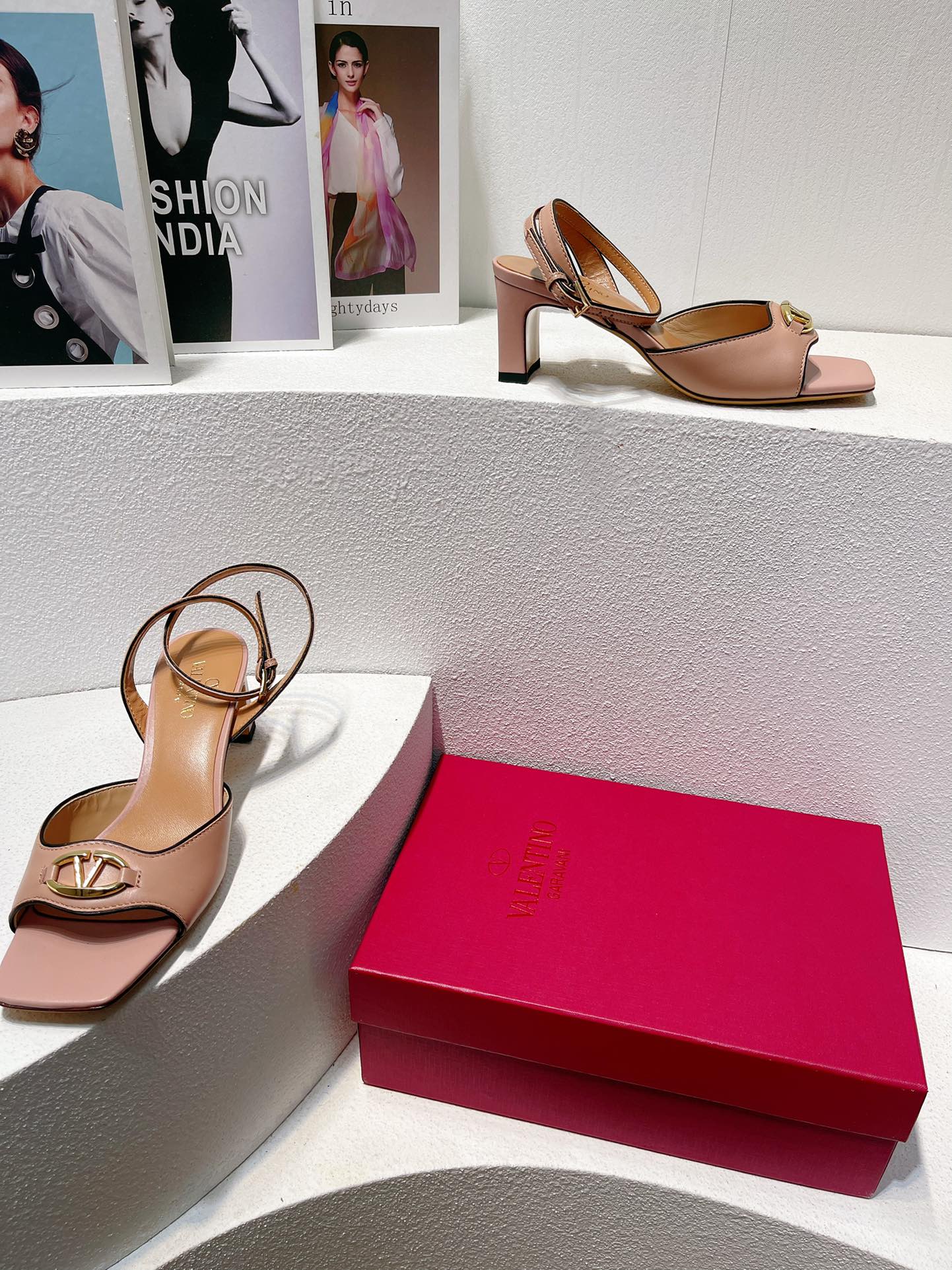 VT Sandals Heels 50mm Nude Cowhide 292773